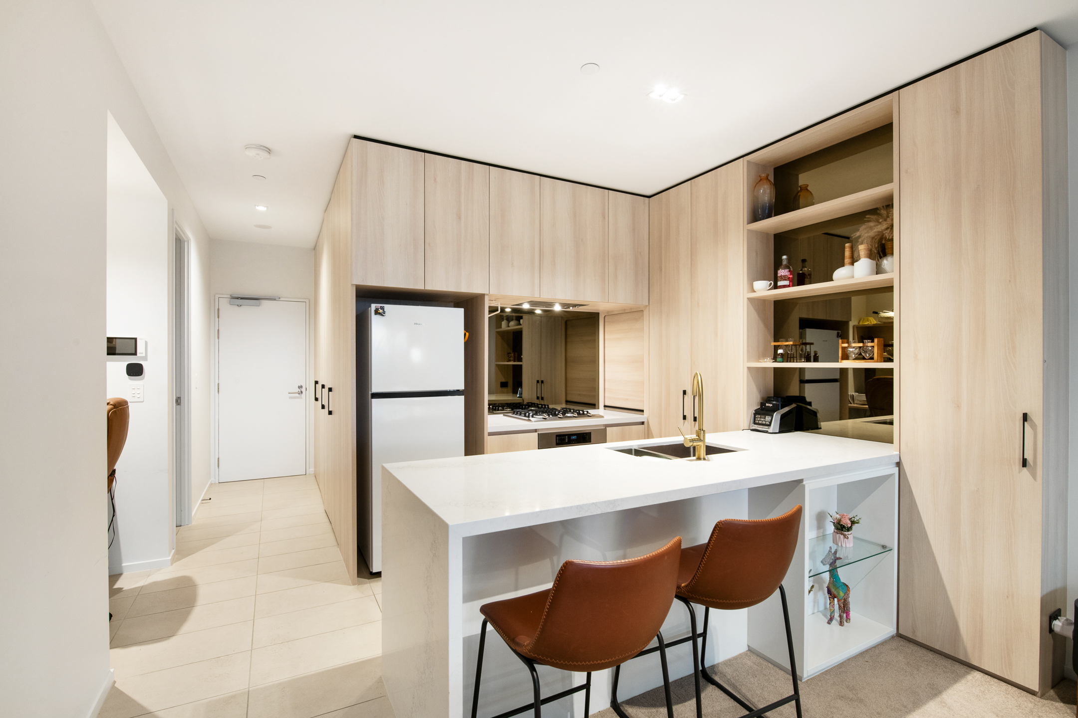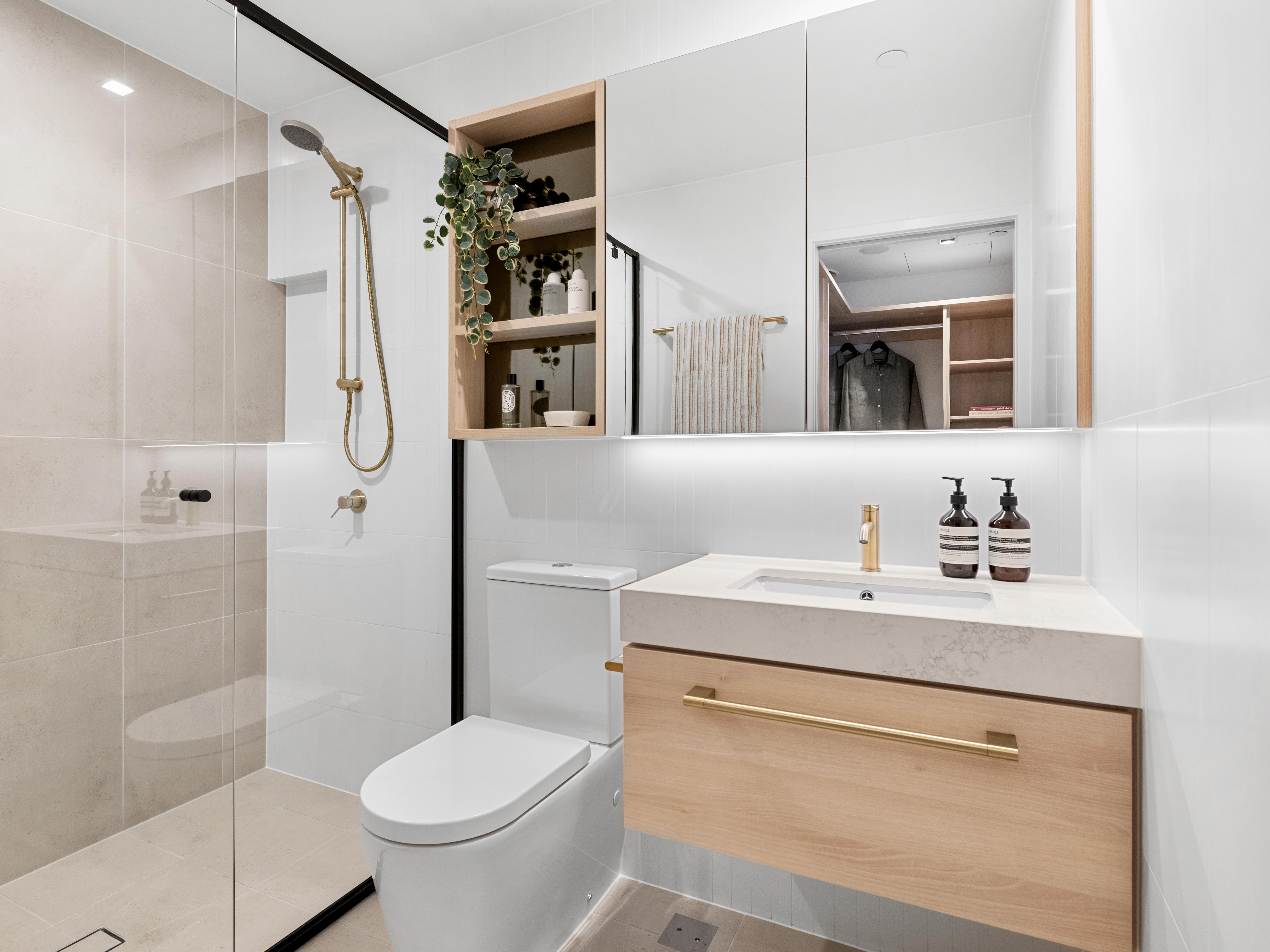Striking bronze-glazed balconies create serene outdoor retreats to enjoy the most picturesque sunsets overlooking the iconic Gasometer and beyond. Thoughtful design continues throughout, with extensive joinery – including generous linen and broom cupboards – maximising storage and functionality, complemented by a dedicated laundry for complete convenience.