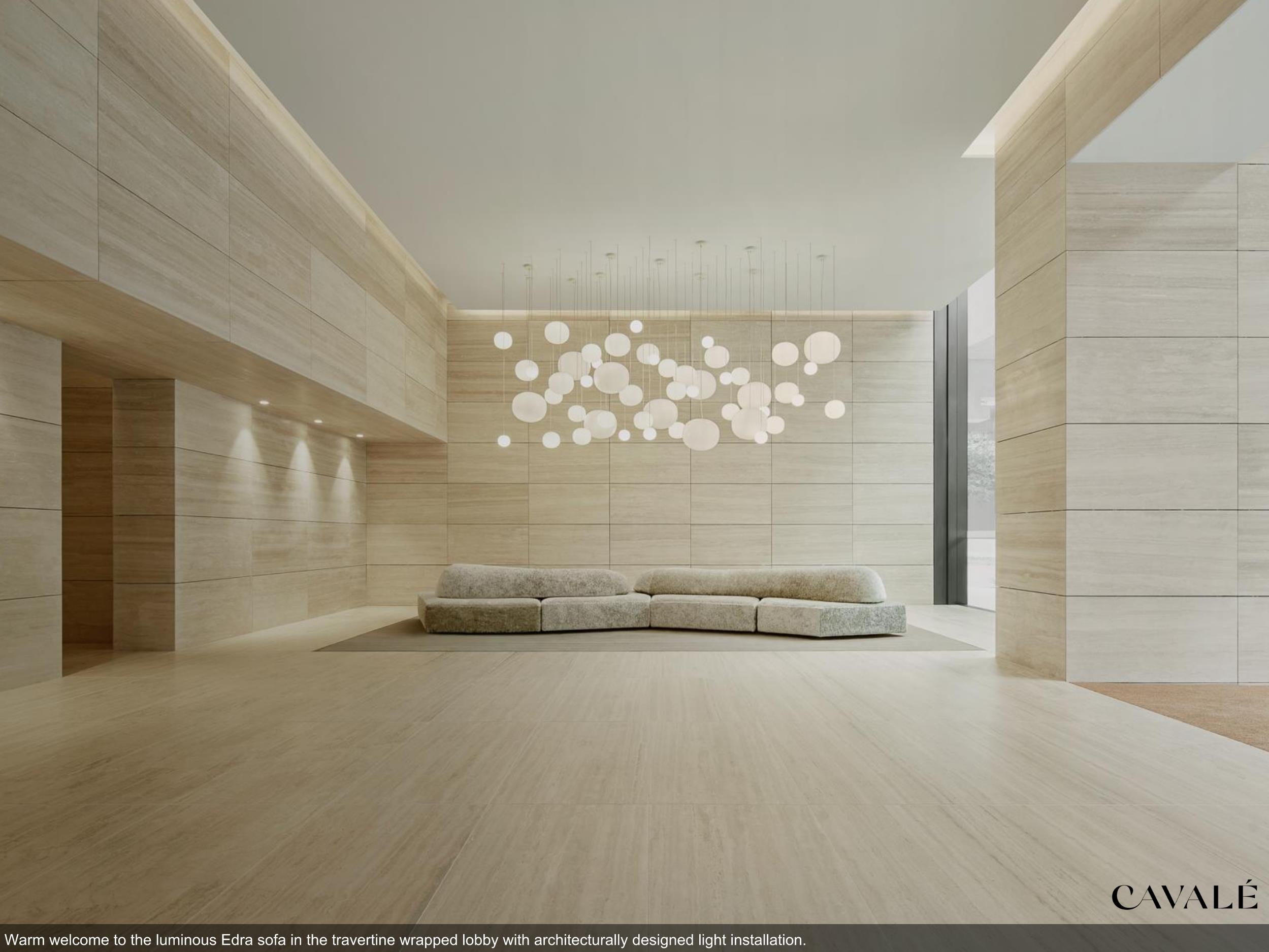 Once past the magnificent entrance, residents enter the luxurious travertine marble lobby leading to three intimate and welcoming high-speed air-conditioned elevators.