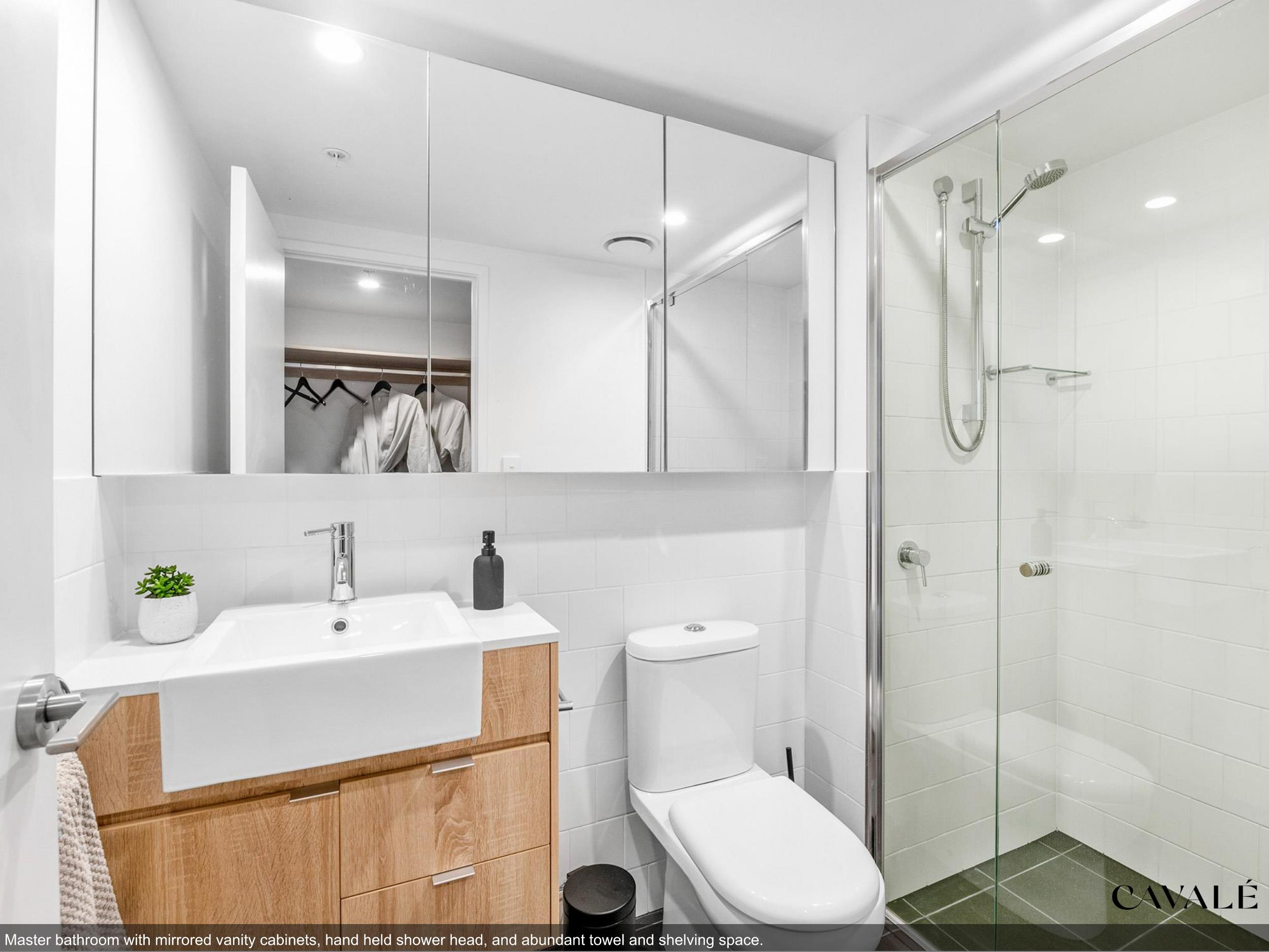 The gourmet signature kitchen with stone breakfast bar and full height joinery flows gracefully into a spacious open plan dining and lounge space. Both master bedrooms features 2.5m of double hanging mirrored robe space. The master bedroom offers his and her cupboard space, with the walk in wardrobe that flows into the ensuite, offering mirrored vanity cabinets, hand held shower heads, and abundant towel and shelving space.