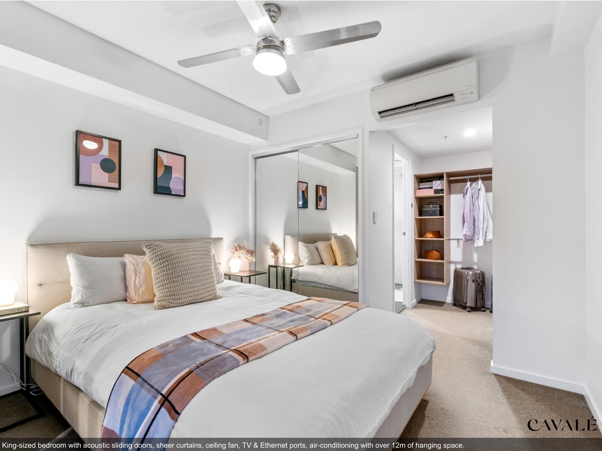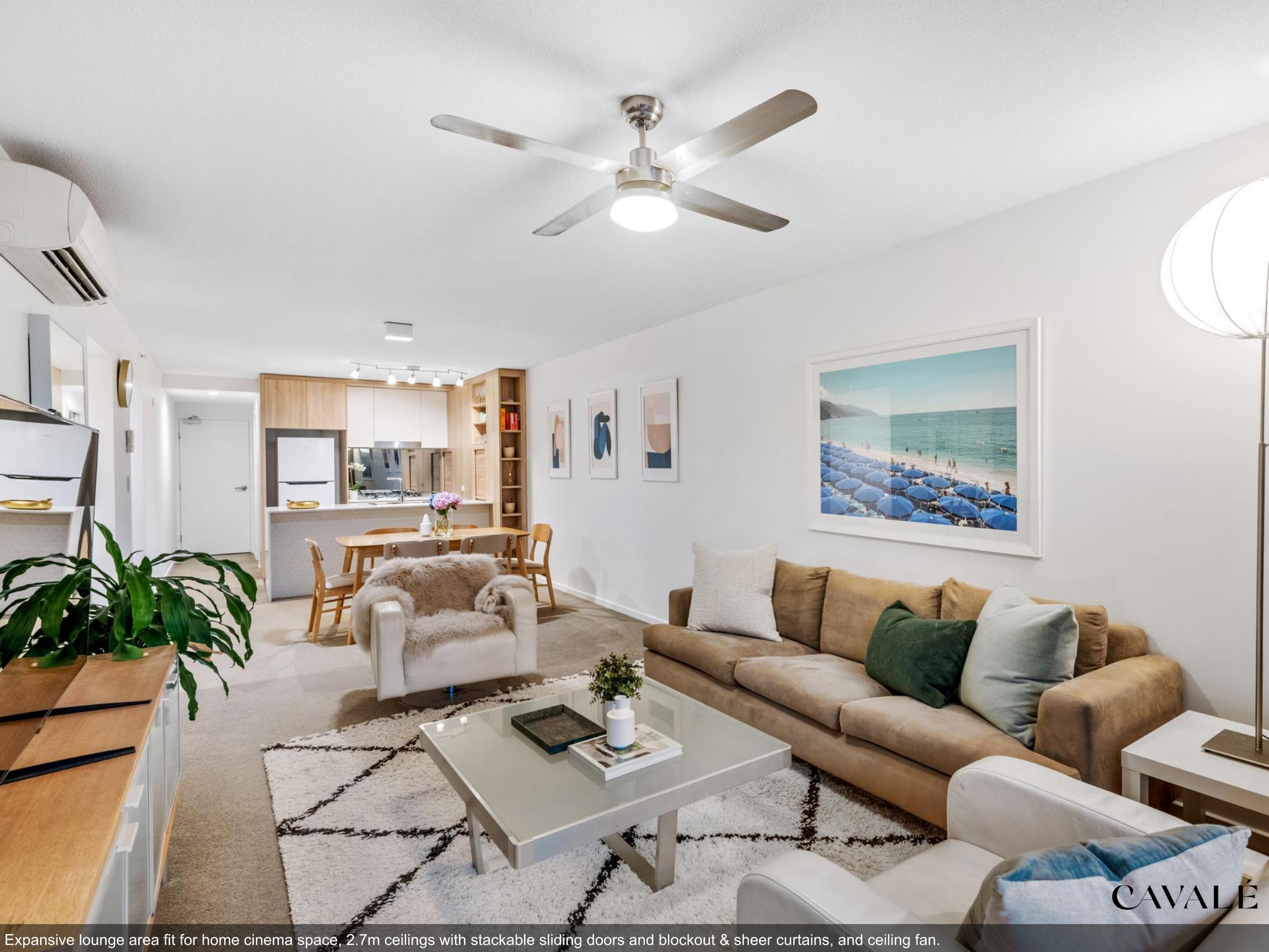 A spacious and functional 2 bedroom luxury apartment with multi-purpose room, in the highly esteemed ‘ONE OAK’ by Cavcorp. The apartments tasteful design comes together to create a low-maintenance inner-city living space, with stand-out features that include ceiling fans throughout, 2.7m high ceilings, a chefs kitchen, plus an addition of a generously sized multi-purpose room for the ultimate flexibility to grow your family, or provide you a luxurious work-from-home arrangement.