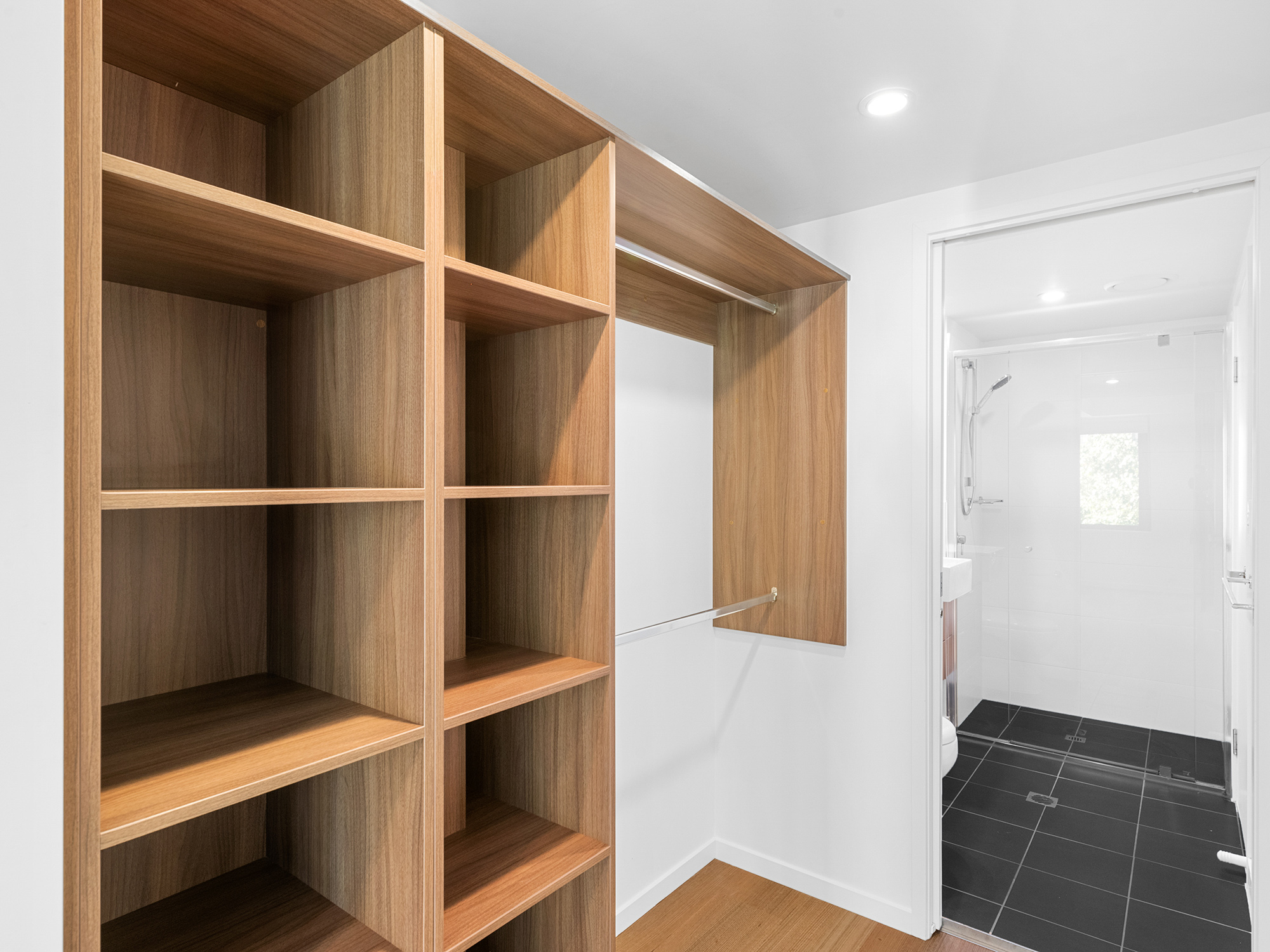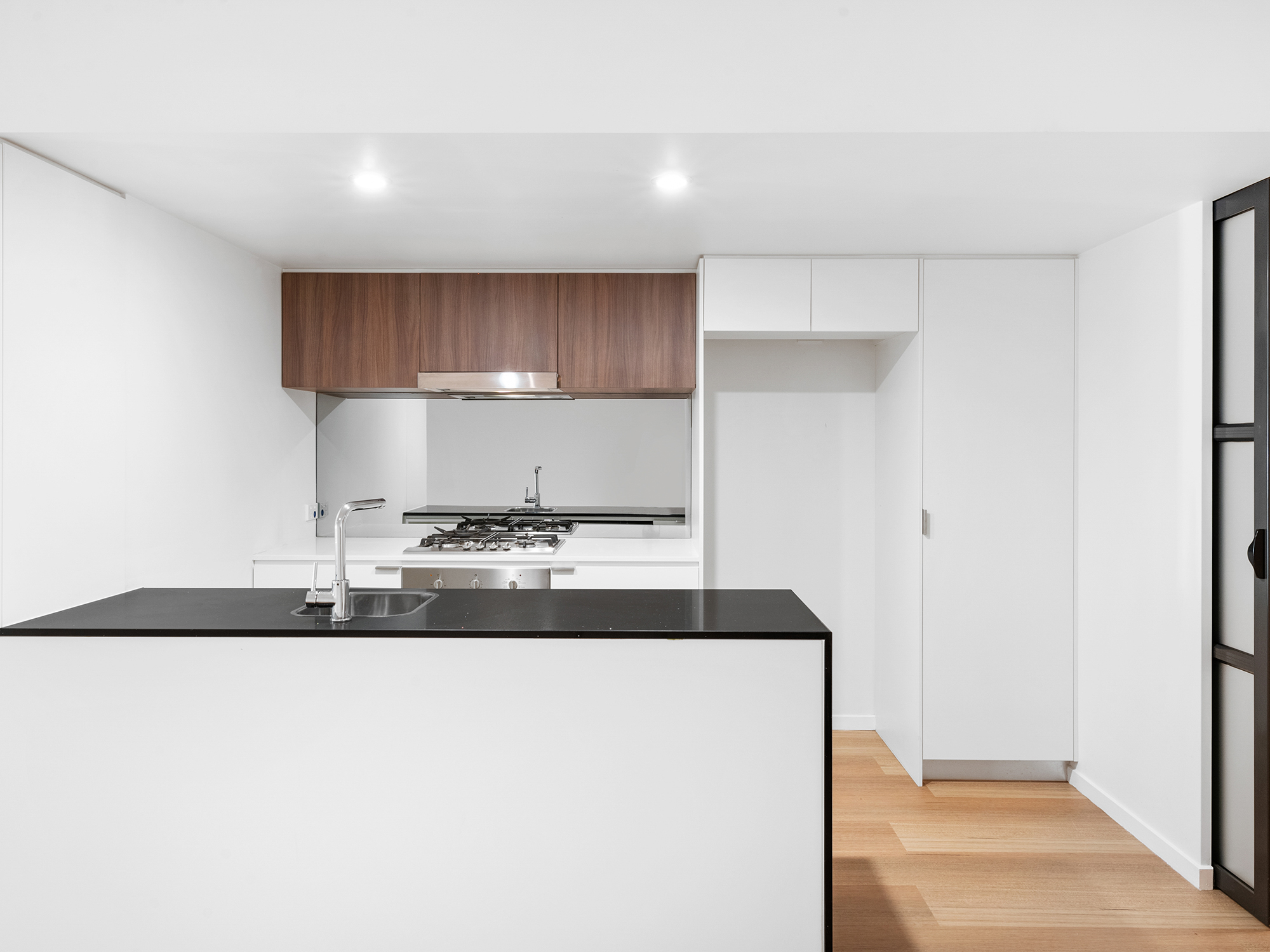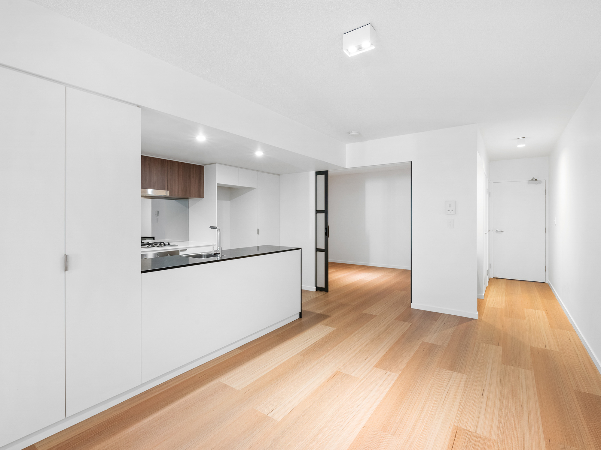 An award-winning architectural landmark by Cavcorp, THE James is celebrated for its exceptionally scaled interiors, soaring 2.7m ceilings, and full-height stackable glass sliders that dissolve the boundary between indoors and out. At the heart of the home, a gourmet stone kitchen with a sculptural breakfast bar and full-height joinery flows into an open living and dining expanse-ideal for entertaining, lounging, or cinematic nights in.