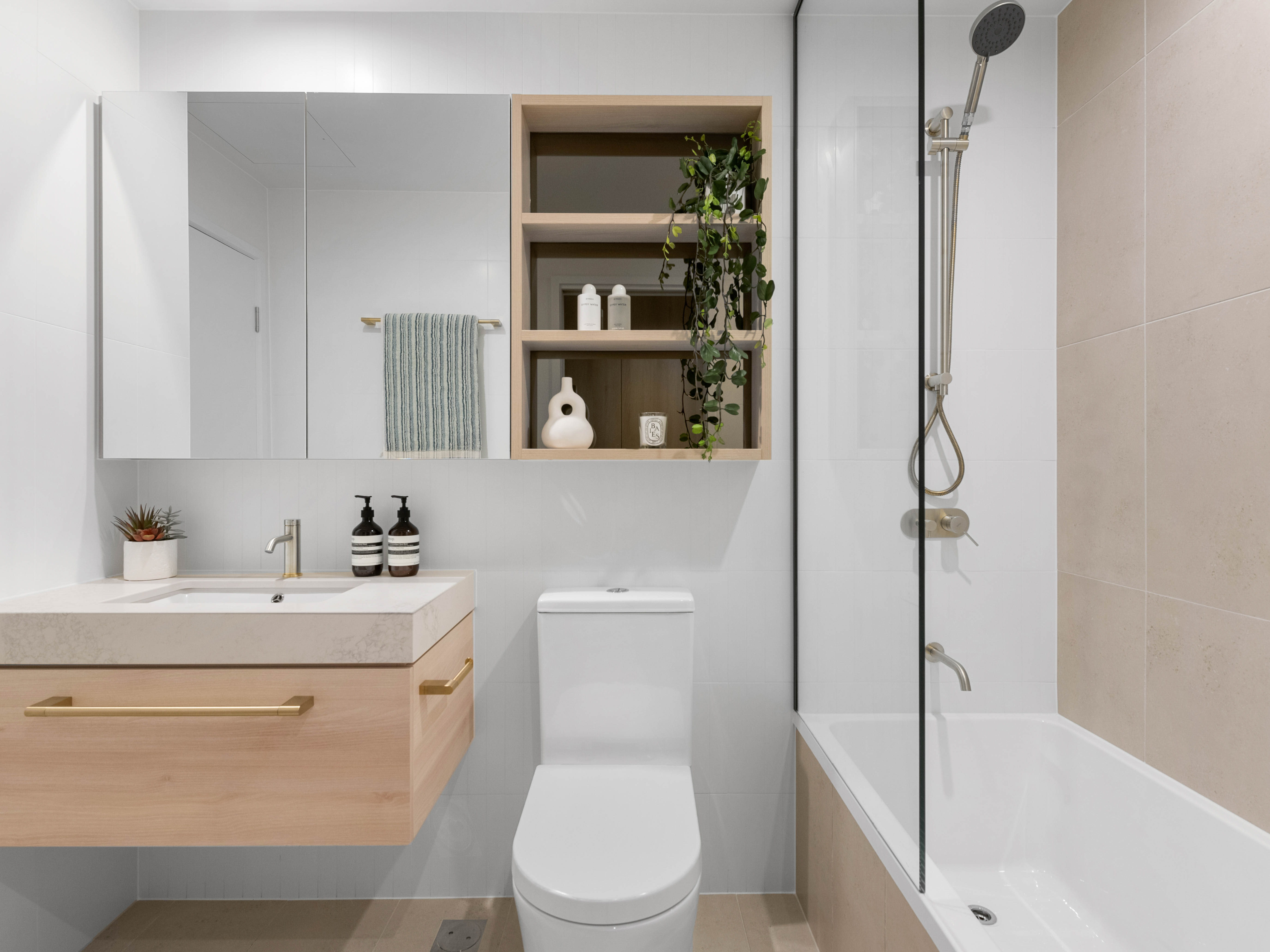 Striking bronze-glazed balconies create serene outdoor retreats to enjoy the most picturesque sunsets overlooking the iconic Gasometer and beyond. Thoughtful design continues throughout, with extensive joinery – including generous linen and broom cupboards – maximising storage and functionality, complemented by a dedicated laundry for complete convenience.