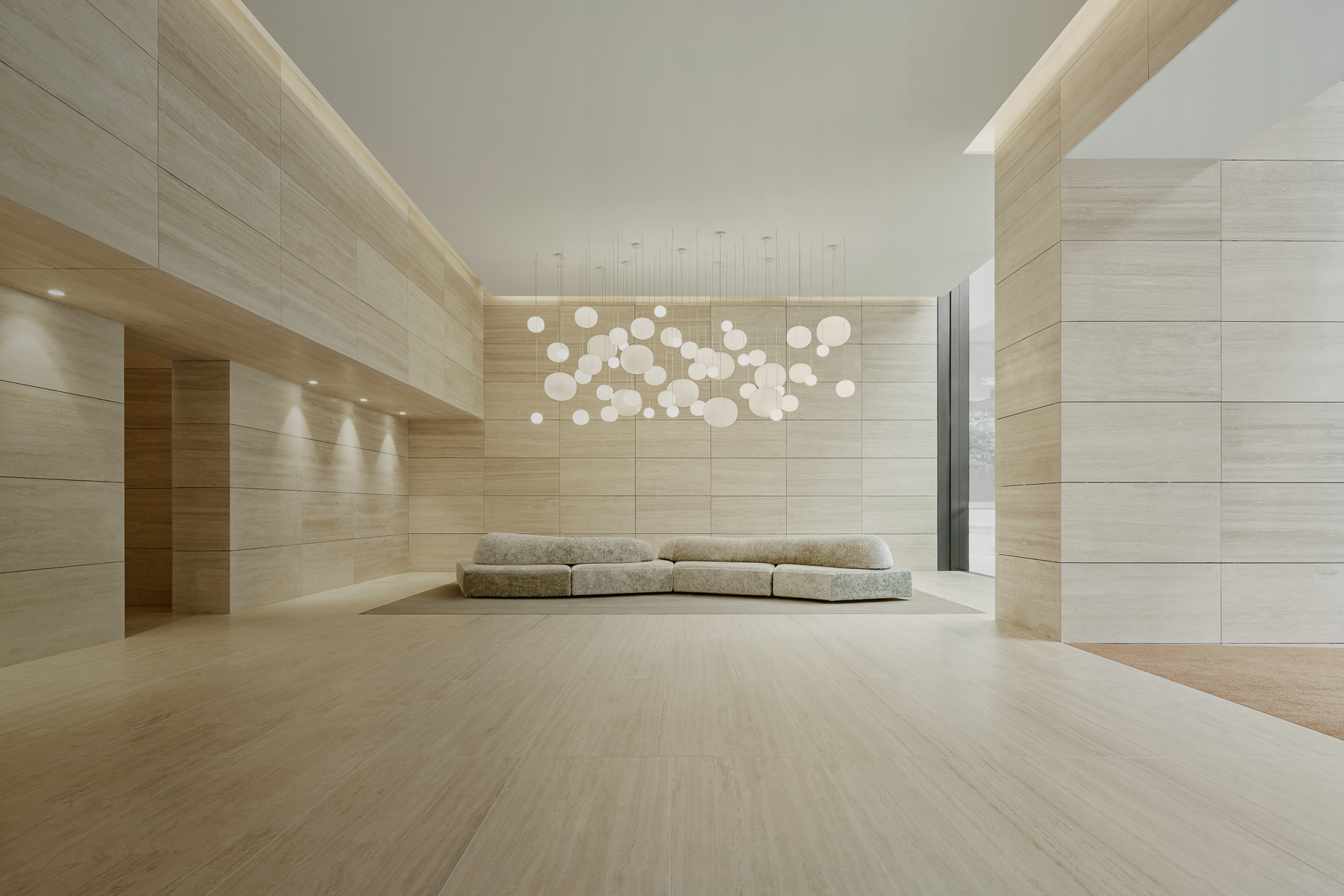 Once past the magnificent entrance, residents enter the luxurious travertine marble lobby leading to three intimate and welcoming high-speed air-conditioned elevators.