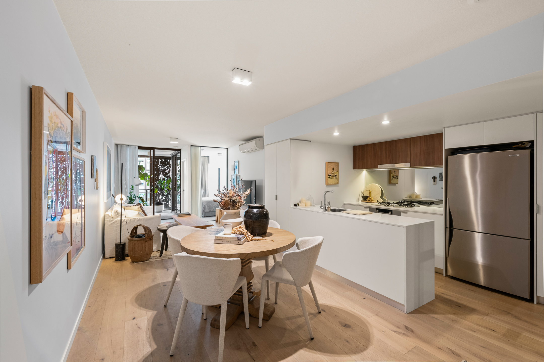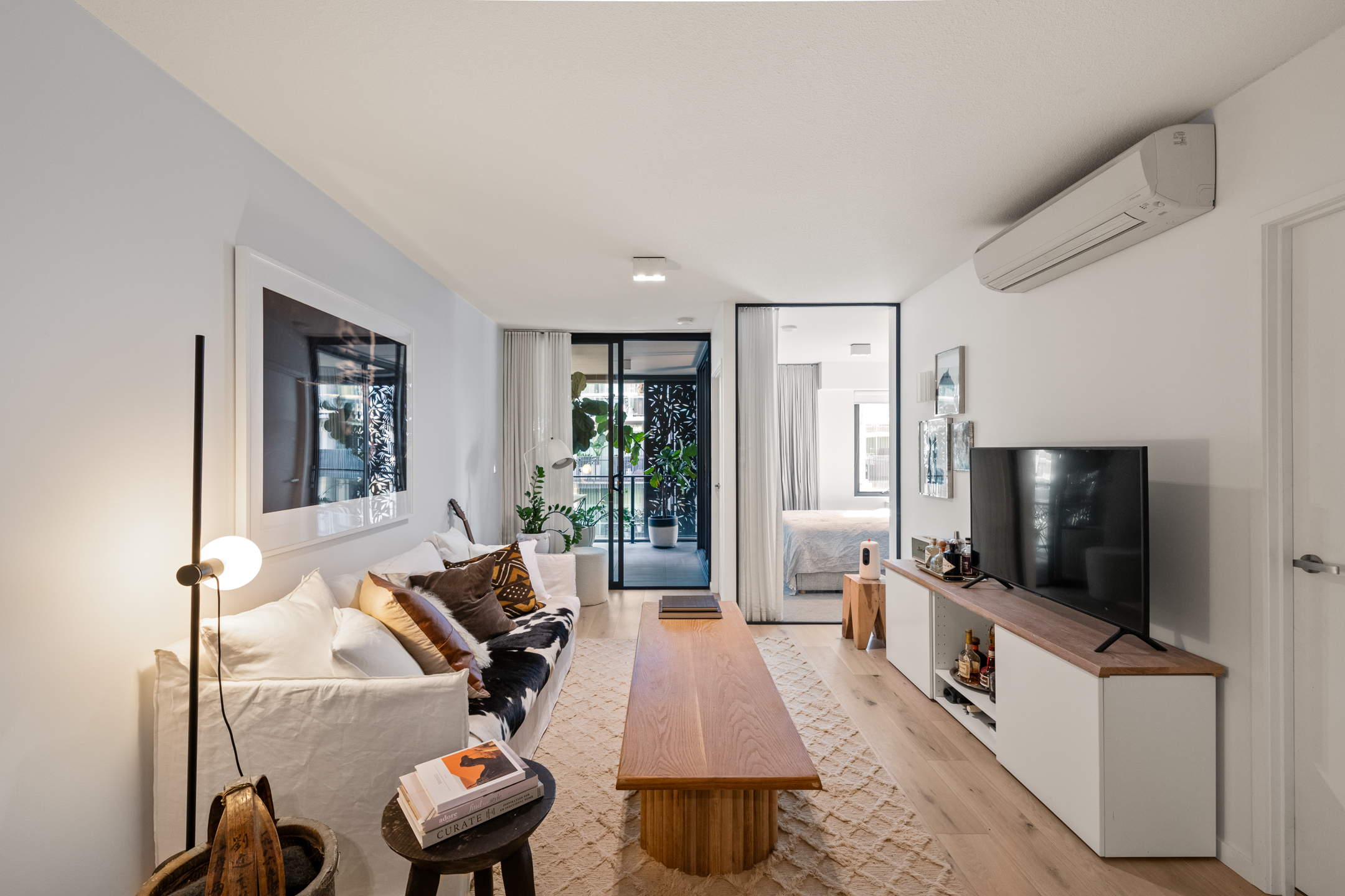 Spanning a generous 81sqm, this beautifully reimagined 1 bedroom + multi-purpose room residence pairs bohemian charm with exceptional scale. A wraparound balcony with privacy sun-screens frames serene, leafy views over Garden Lane, while its coveted address-just moments from the iconic Teneriffe River Walk and vibrant Gasworks precinct-offers the perfect balance of tranquillity and cosmopolitan living at THE James.