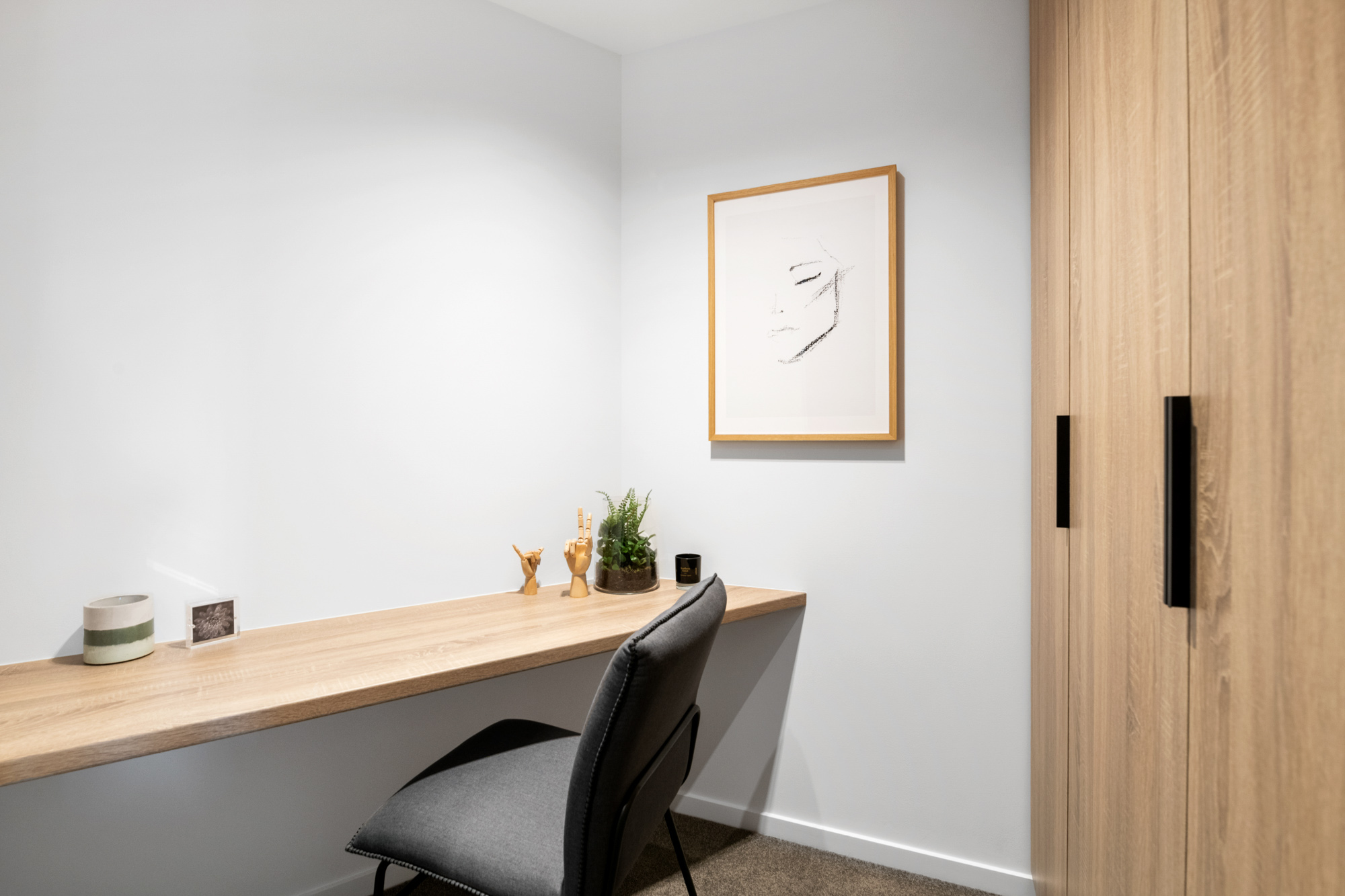 Le Bain’s floorplans are smart, considered and use space elegantly and intelligently. Your third room is flexible by design to adapt to changing needs and desires whether you work from home, or need the extra space as you grow your family. The additional study with custom full-height joinery and built-in-desk affords even more WFH space and the generous linen and broom cupboards situated throughout the apartment, maximise storage and cater for essential home items.