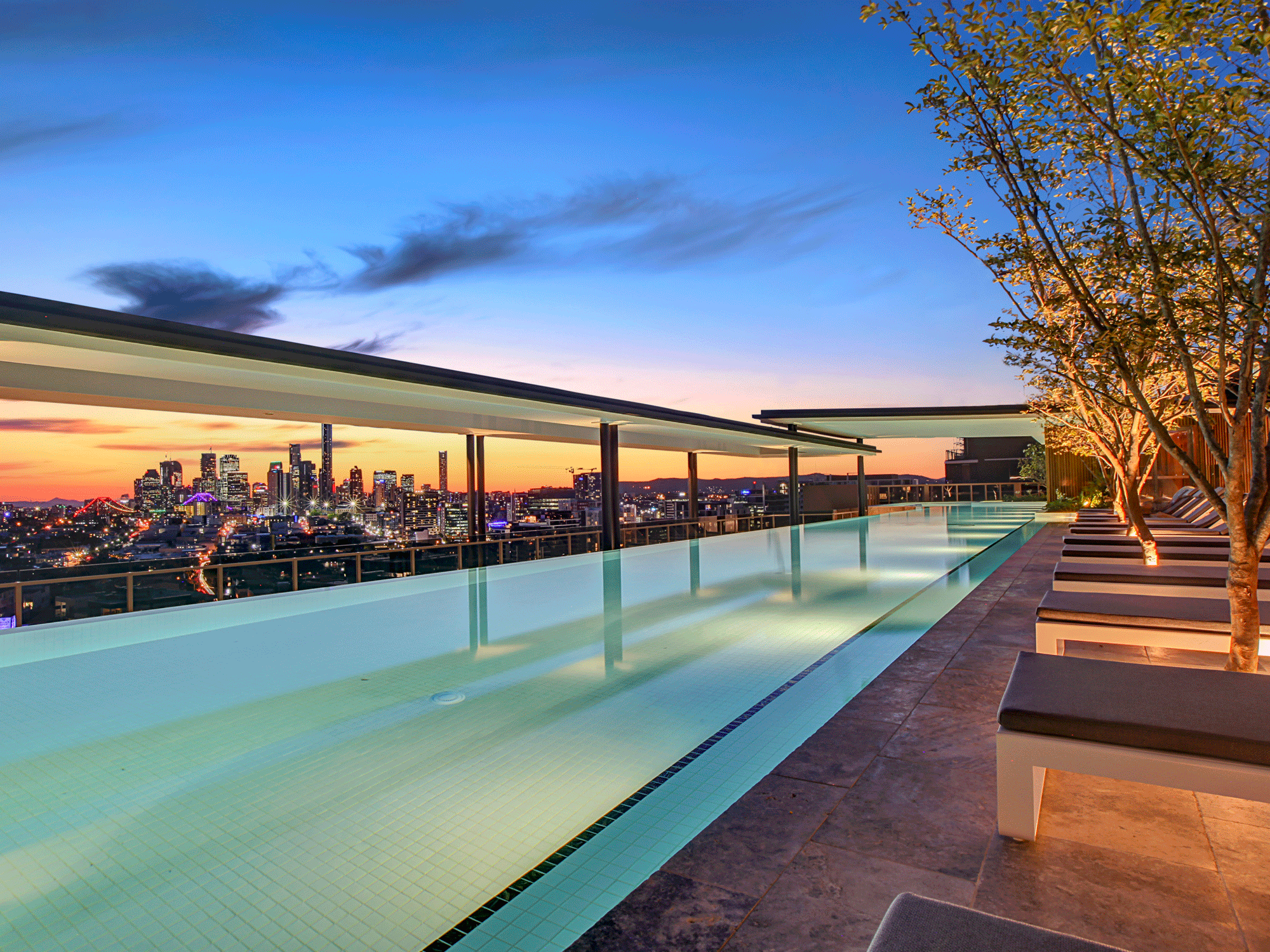 Lucent is crowned with world class rooftop amenity spread over 1600m² complete with 55m infinity pool with waterfall sundeck, heated sunset spa, sauna, golf simulator, gymnasium featuring cutting edge Technogym equipment, table 55 private dining room, and rooftop entertaining area complete with BBQ areas and private pool side relaxation areas.
