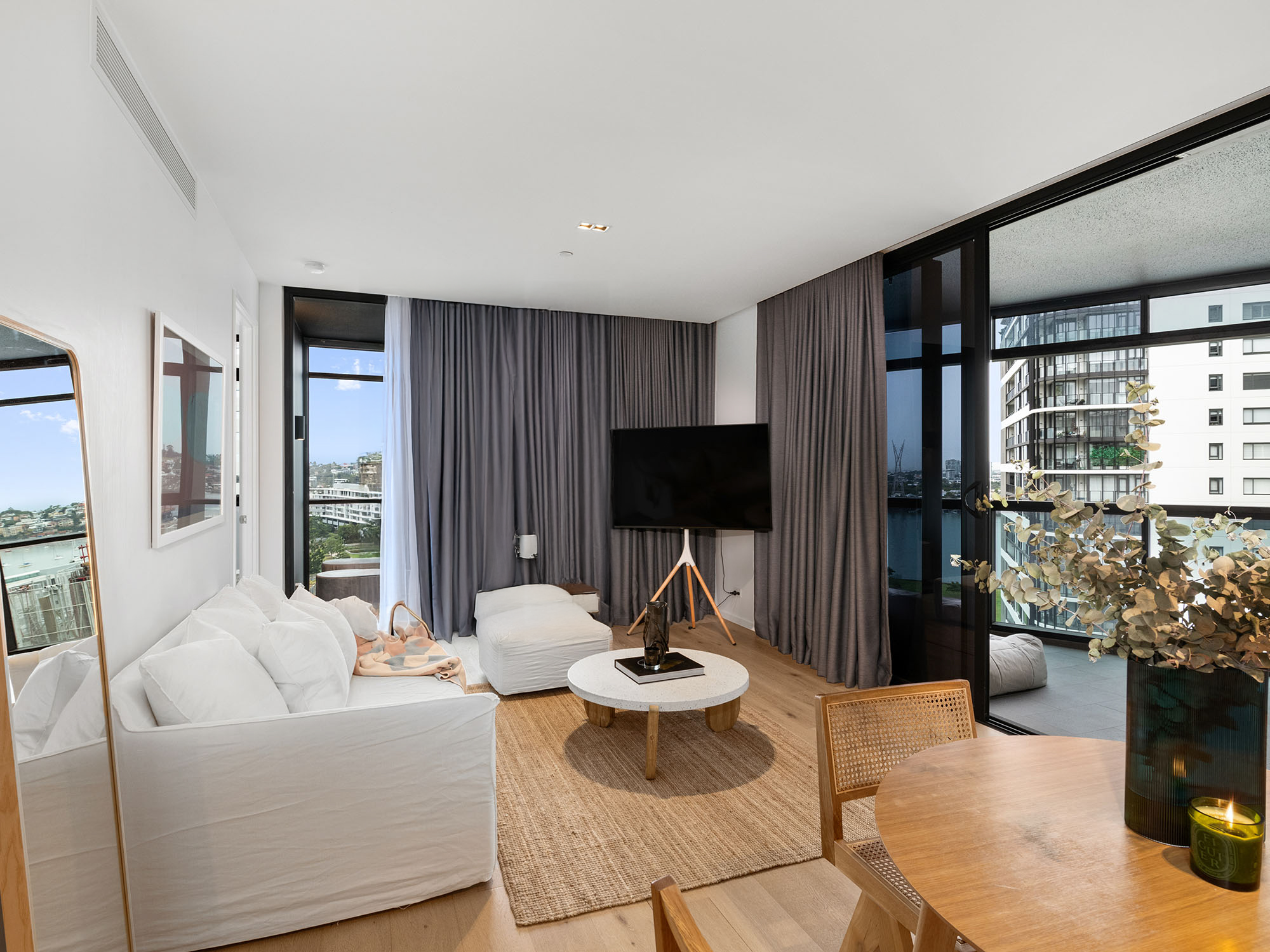 Bathed in year-round natural light and cross-ventilation, there is a genuine feeling of openness the minute you step into this luxury apartment. With soaring 2.7m ceilings and a 22m frontage of performance glazing across the entire apartment, the architectural form of apartment 808 seamlessly merges the outdoors with the indoors, benefiting from a leafy aspect, and a huge wrap-around north-east facing balcony.
