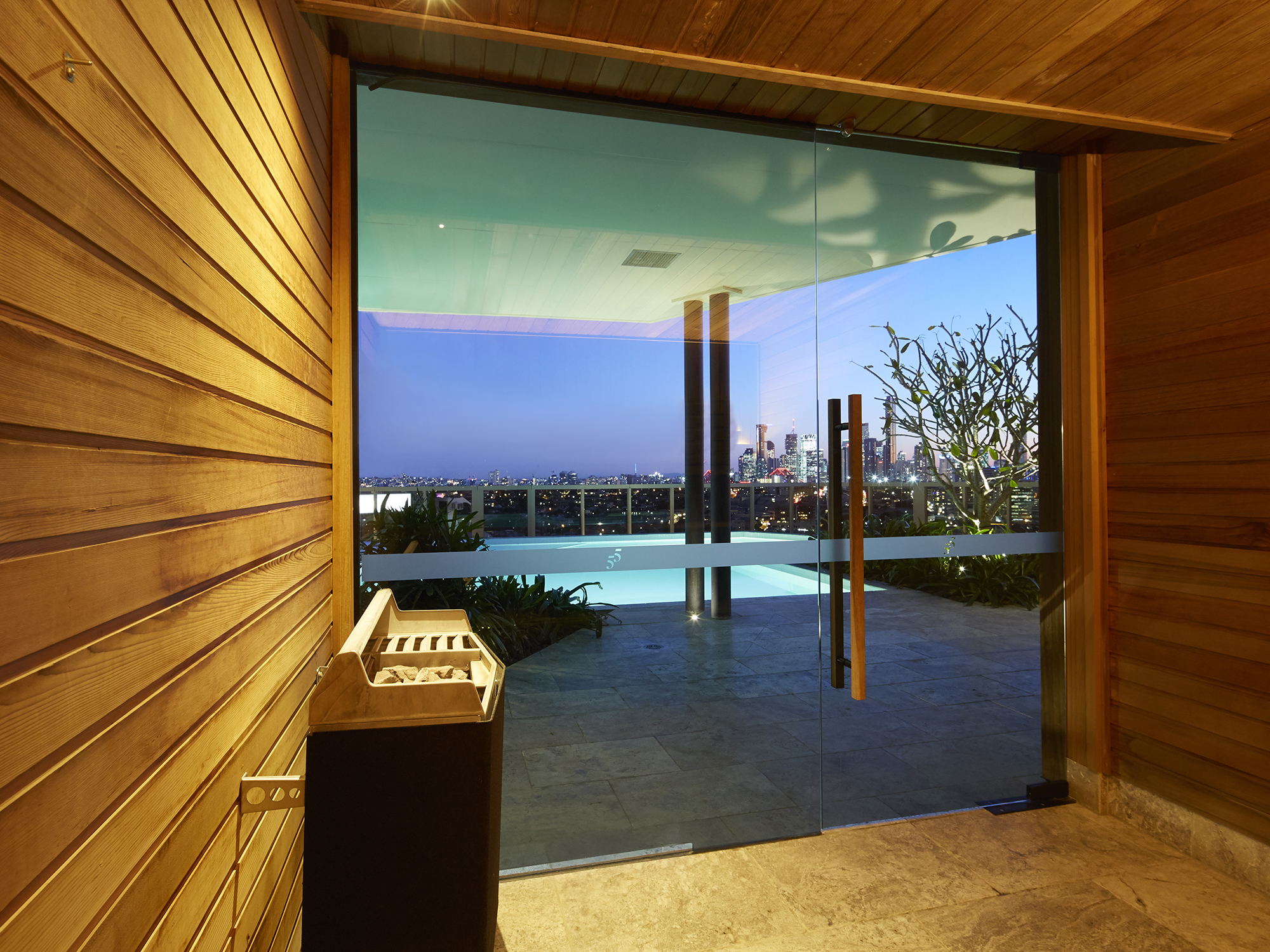 – Sauna with floor to ceiling height glazing and city views