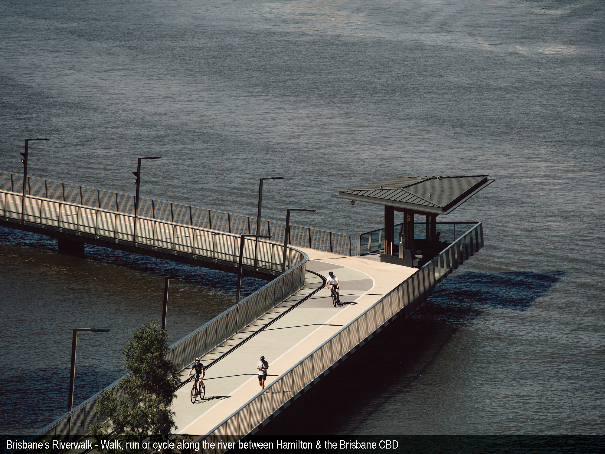 1. 550m – Blue CityGlider every 5min peak times / CityCat / Teneriffe River walk