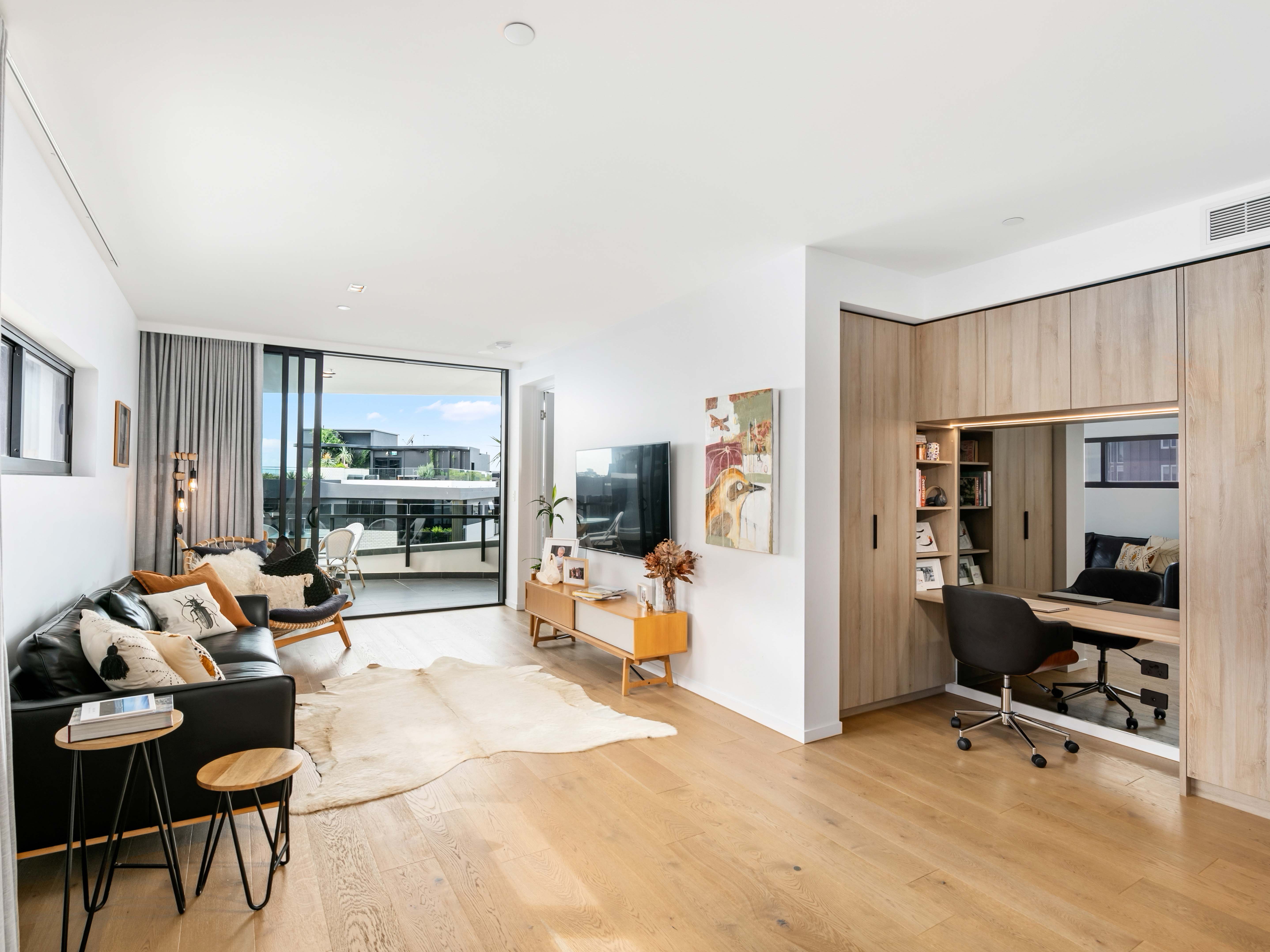 Le Bain is Cavcorp’s latest architectural landmark with exceptionally large internal layouts, soaring 2.7m ceilings and full-height stackable glass sliding doors that bring the outside in. The chef style kitchen with stone island bench and full height joinery flows gracefully into a spacious 9m x 4m dining and lounge / home cinema space. The two master bedrooms feature up to 12m of double hanging robe space, ensuites with mirrored vanity cabinets, abundant towel and shelving space, TV provision, block out curtains and acoustic windows.