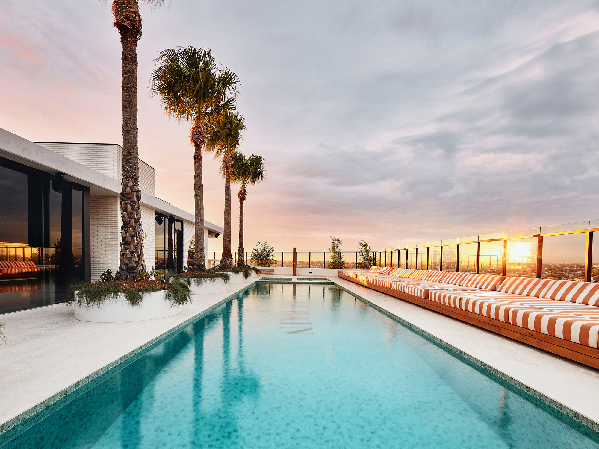 4. CHILL sun lounges by Gandia Blasco create places for relaxing and enjoying city views from the travertine roof terrace, surrounded by high quality landscaping beside an amazing tiled swimming pool.