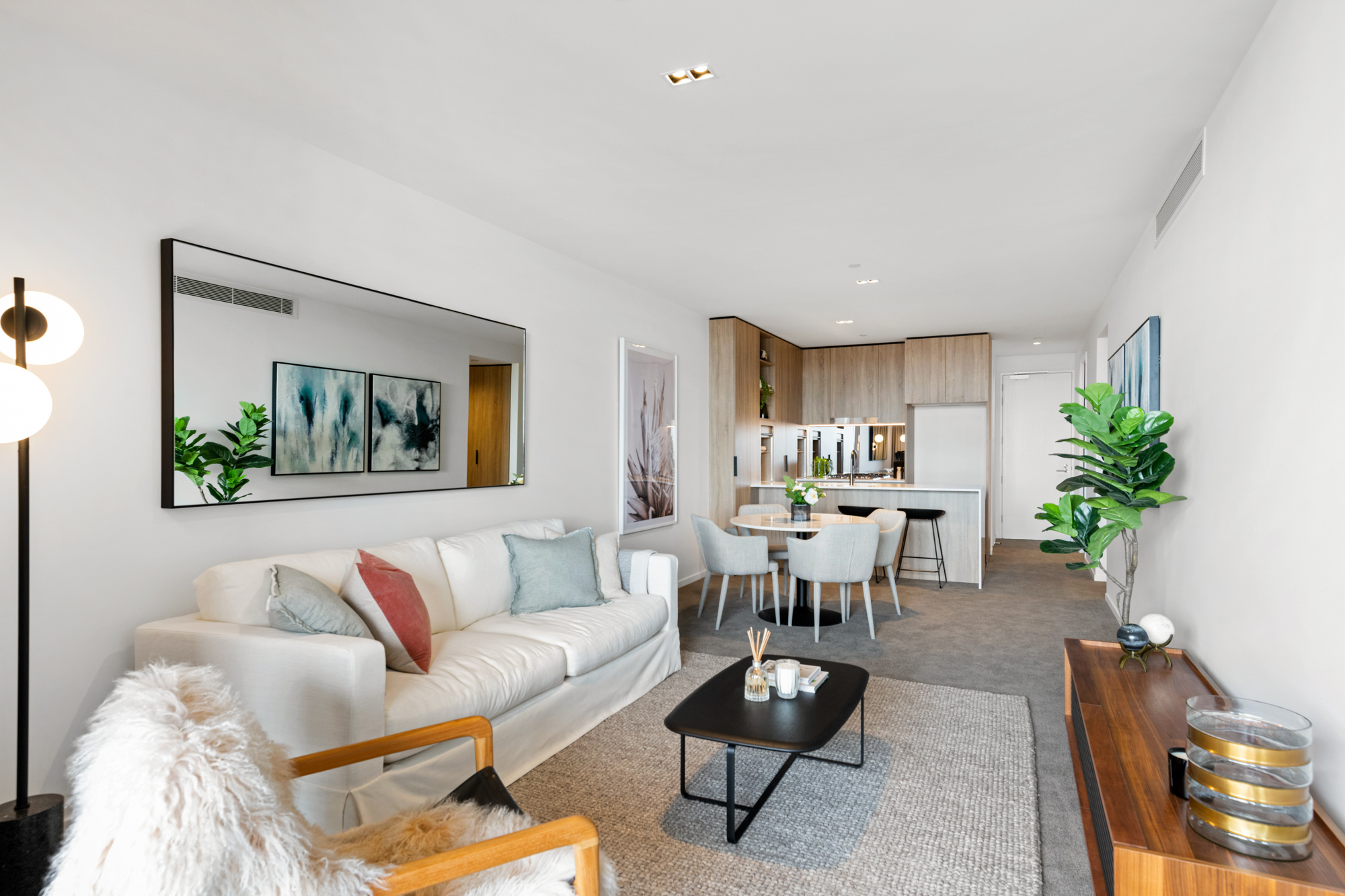 Benefiting from a sprawling open aspect with city glimpses, apartment 906 is fit for a family, featuring two master suites, a very generously sized multi-purpose room, and a well-appointed study room with custom joinery.