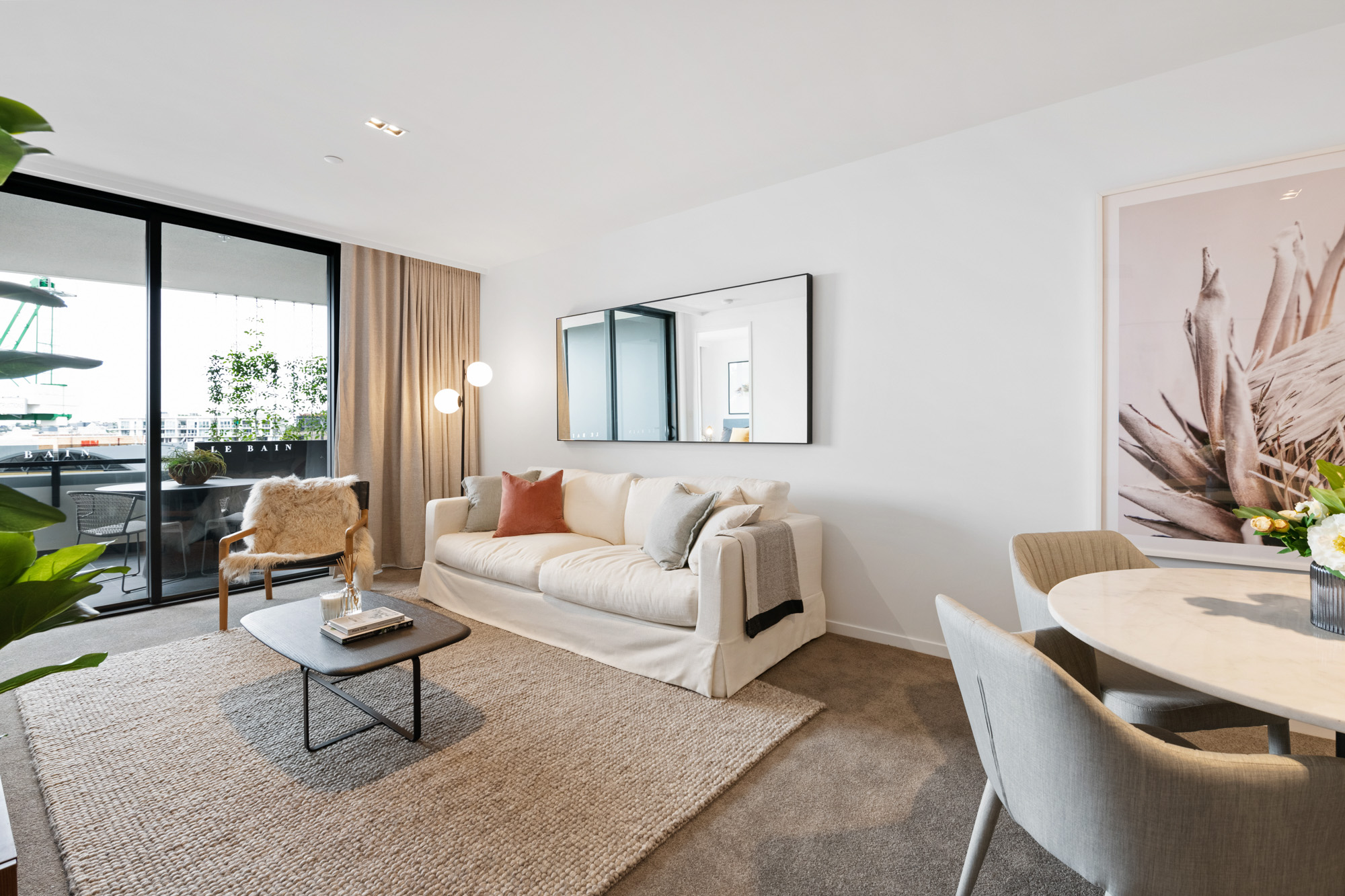Le Bain is one of Cavcorp’s iconic architectural landmarks offering exceptionally large internal layouts, soaring 2.7m ceilings and full-height stackable glass sliding doors that bring the outside in. The chef style kitchen with stone island bench, European appliances and full height joinery flows gracefully into a spacious 9m x 4m dining and lounge / home cinema space.