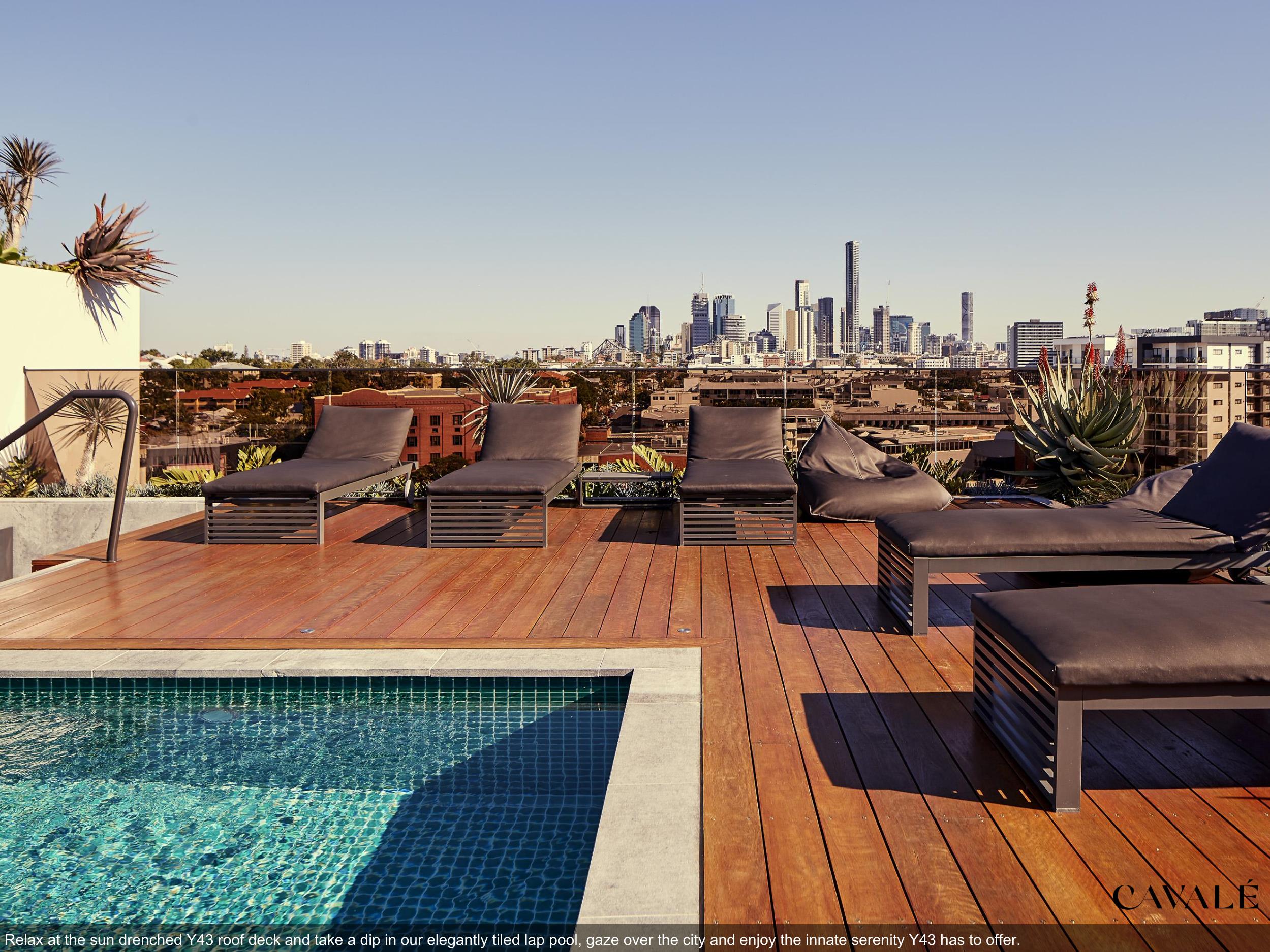 Y43 is an architectural landmark with exceptionally large internal layouts, soaring ceilings and full-height stackable glass sliding doors that bring the outside in. The gourmet kitchen with stone benchtop and full height joinery flows gracefully into a spacious dining and lounge space. The master bedrooms features up to 10m of double hanging walk-in-robe space, ensuite with mirrored vanity cabinets, abundant towel and shelving space, TV provision, block out curtains and acoustic windows.