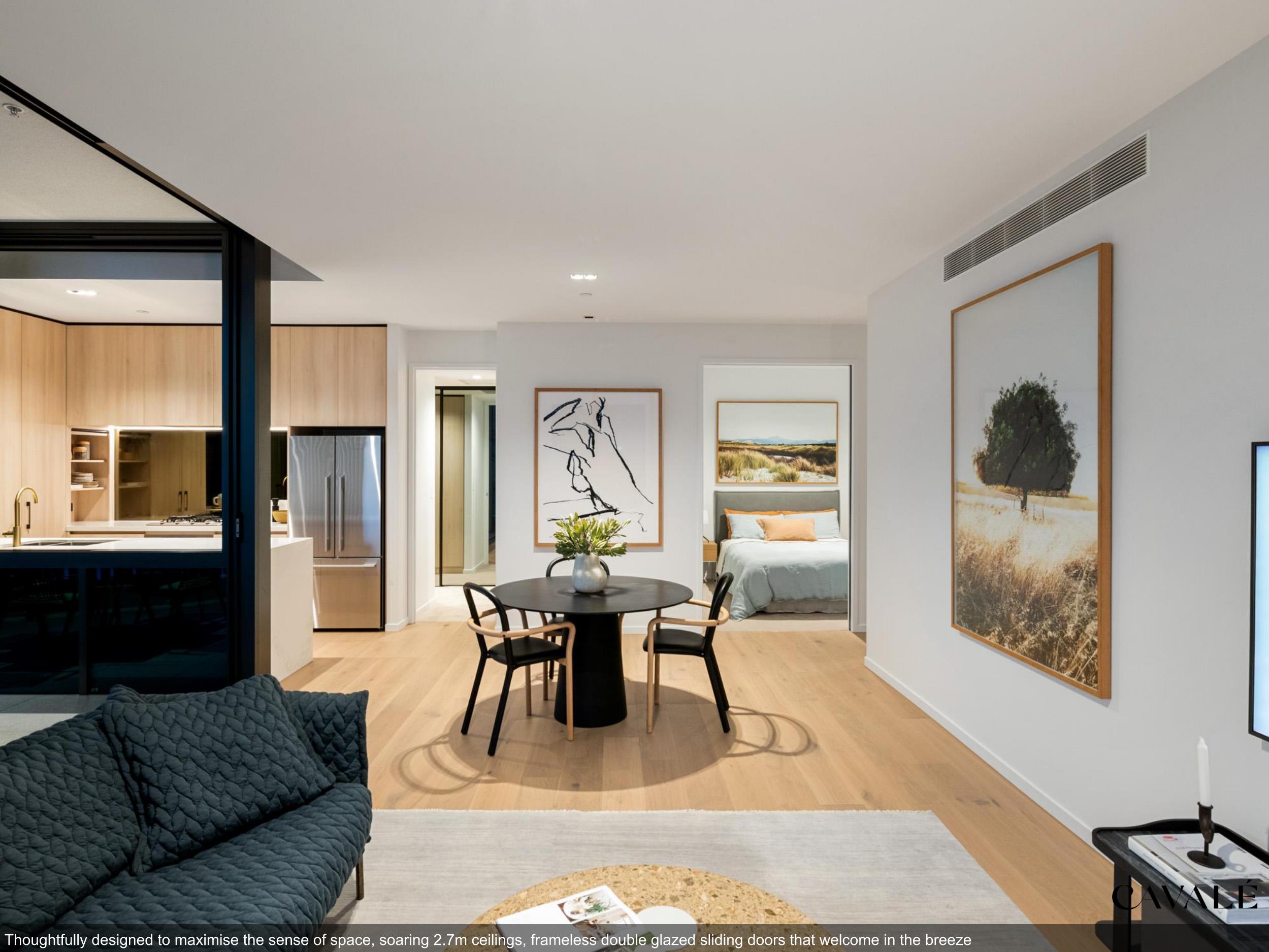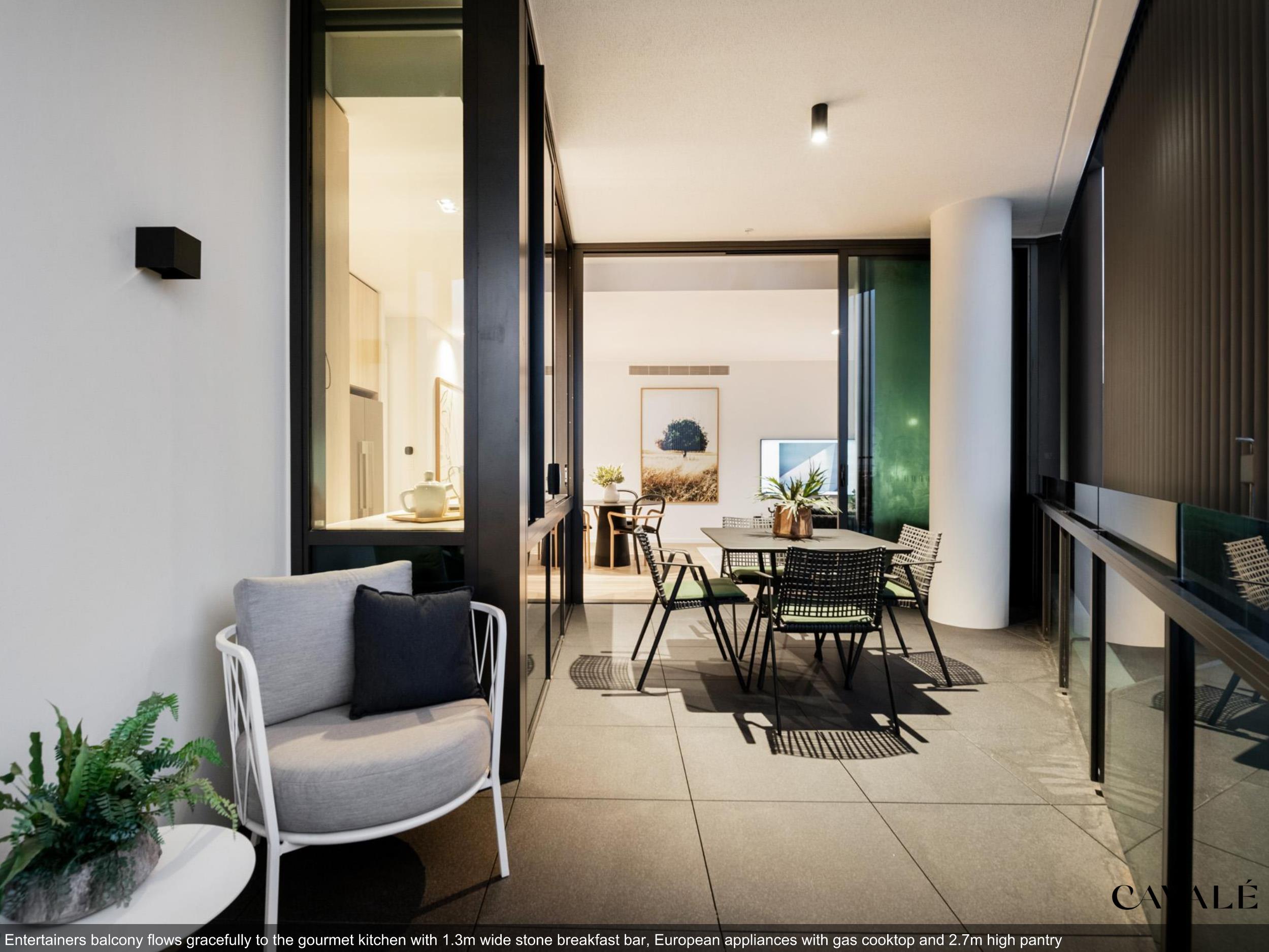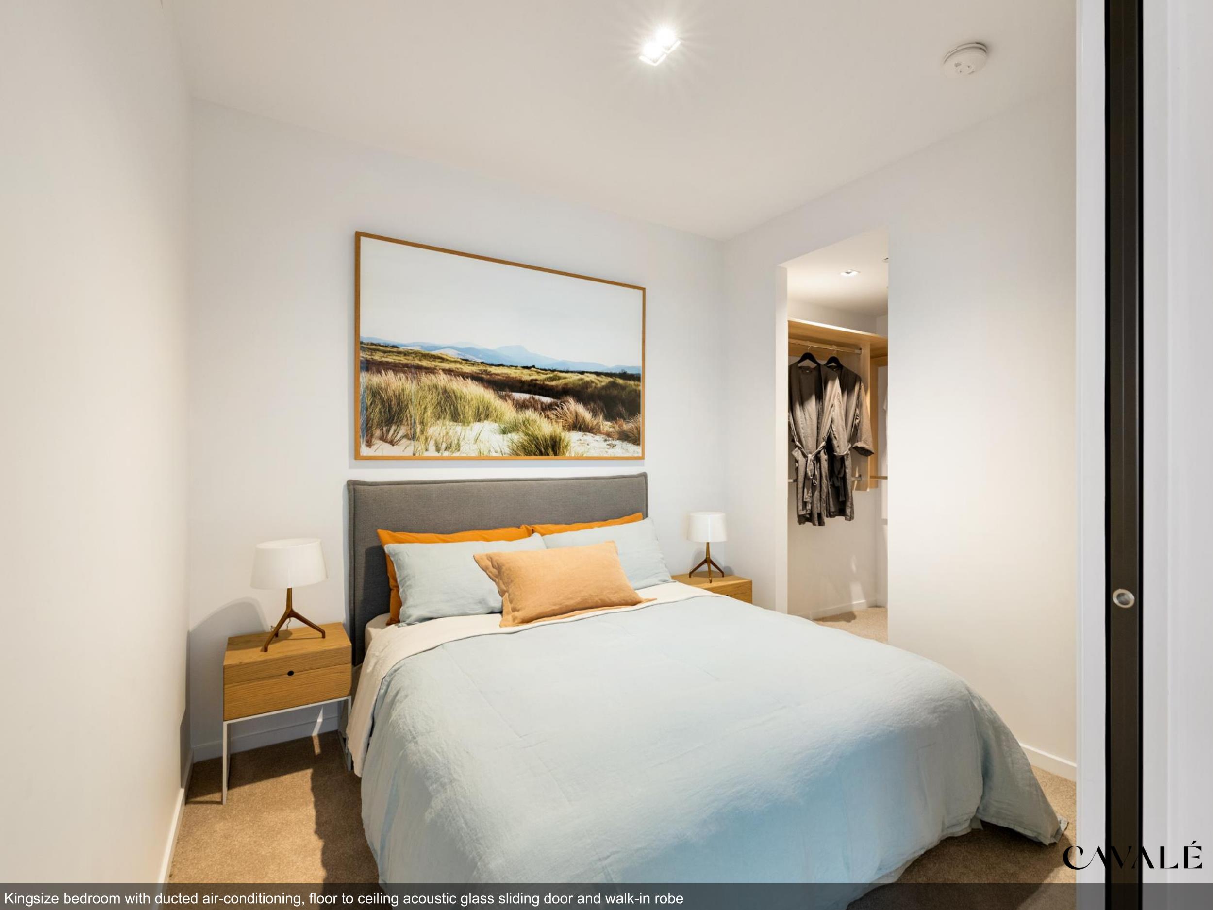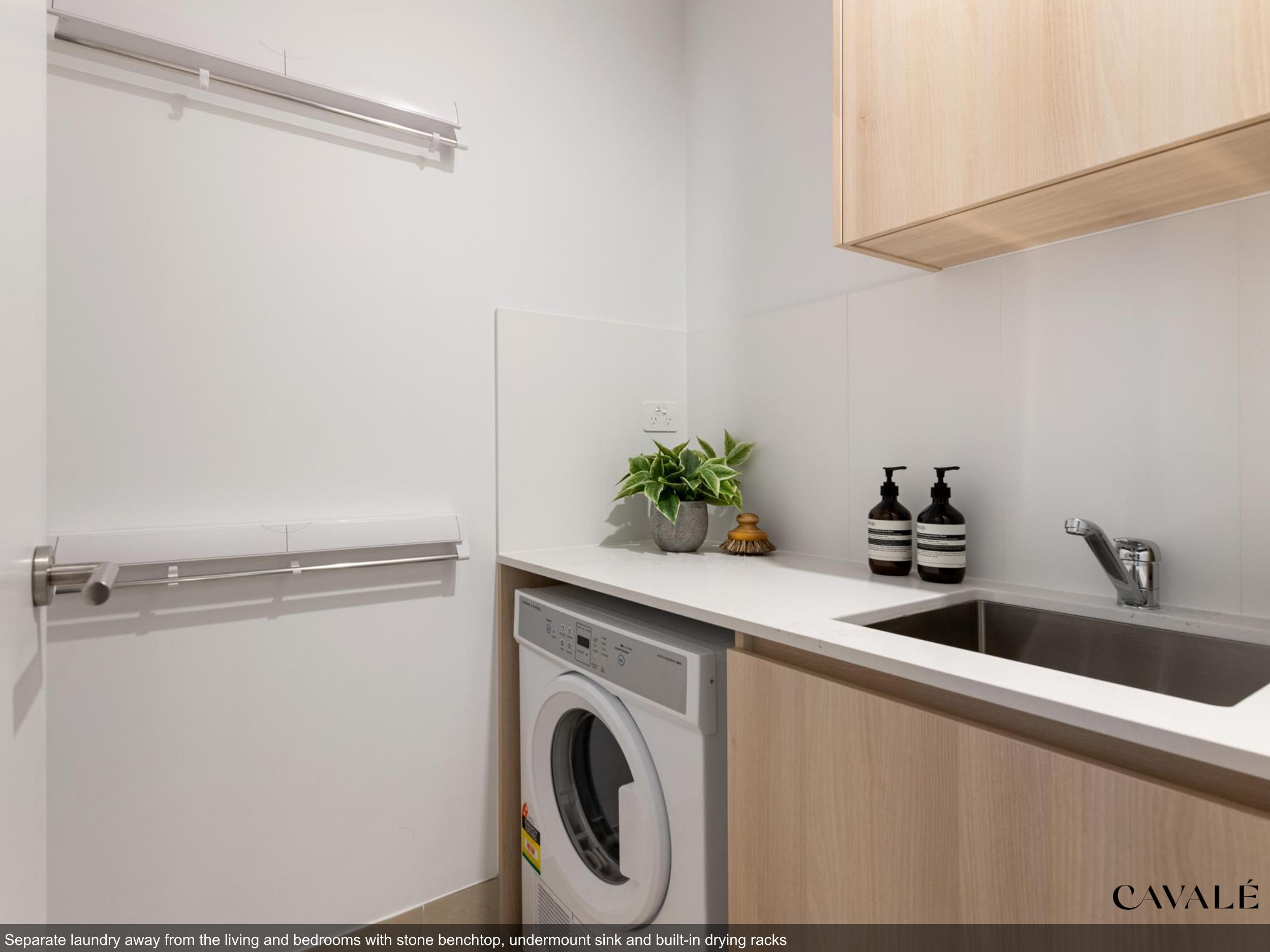 Luminare is Cavcorp’s latest architectural landmark with exceptionally large internal layouts, soaring 2.7m ceilings and full-height stackable double glazed sliding doors that bring the outside in. The gourmet kitchen with stone breakfast bar and full height joinery flows gracefully into a spacious dining and lounge / home cinema space. The two master bedrooms feature up to 12m of double hanging walk-in-robe space, ensuites with mirrored vanity cabinets, abundant towel and shelving space, TV provision, block out curtains and double glazed acoustic windows.