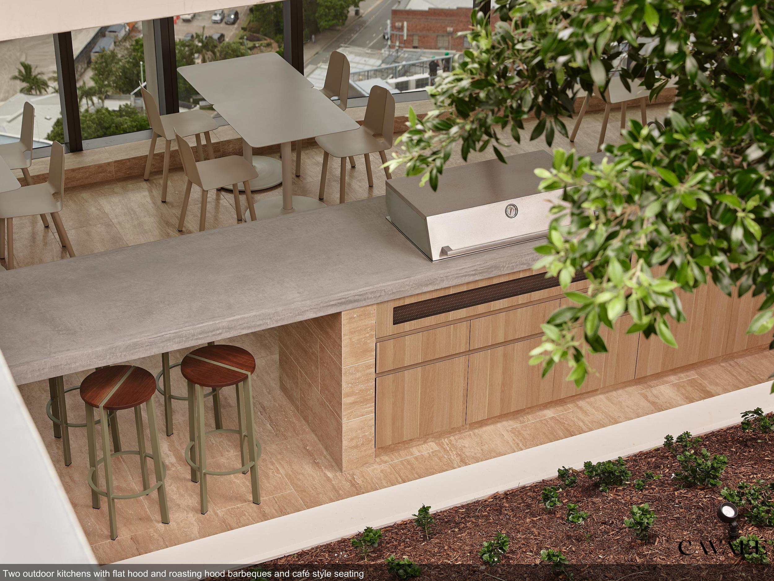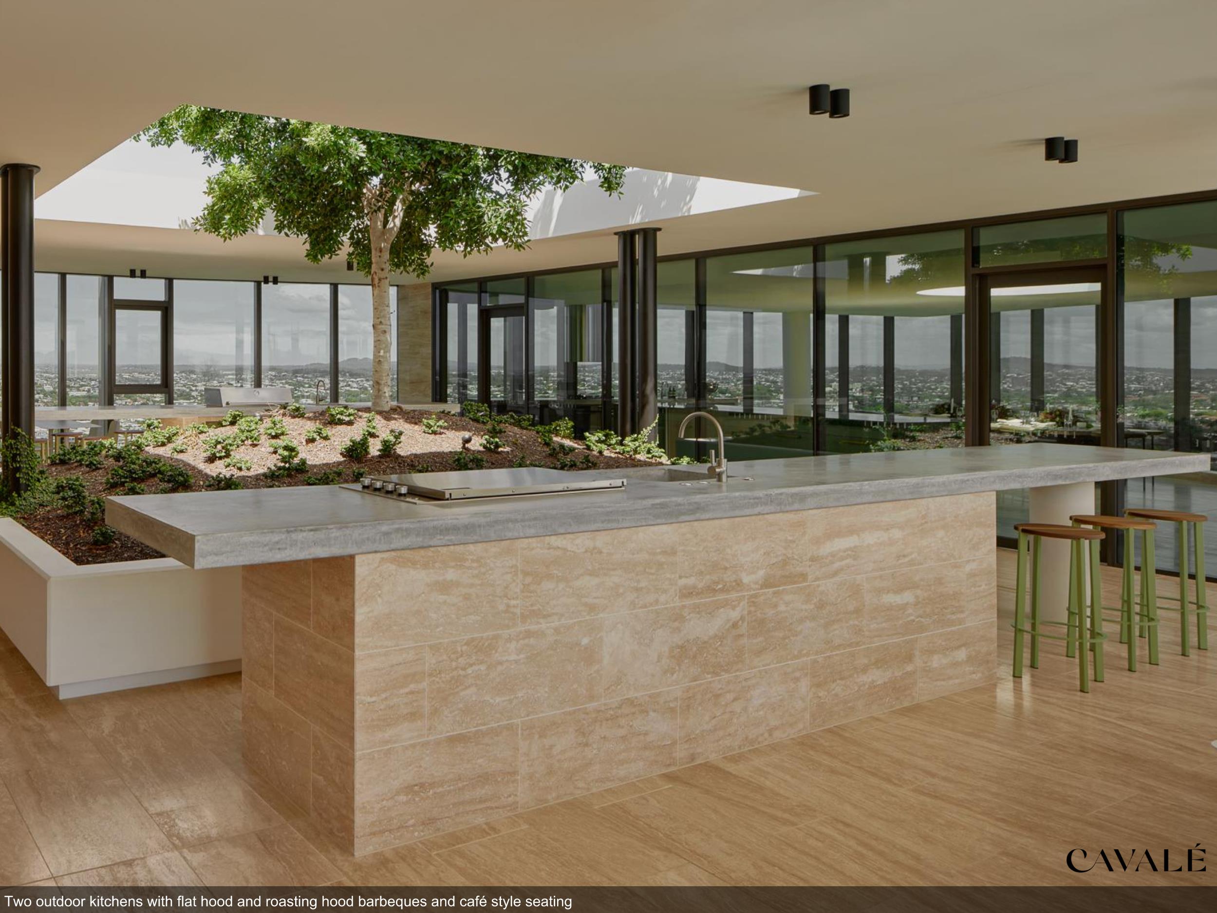• Two outdoor kitchens with charcoal barbeques and café style seating