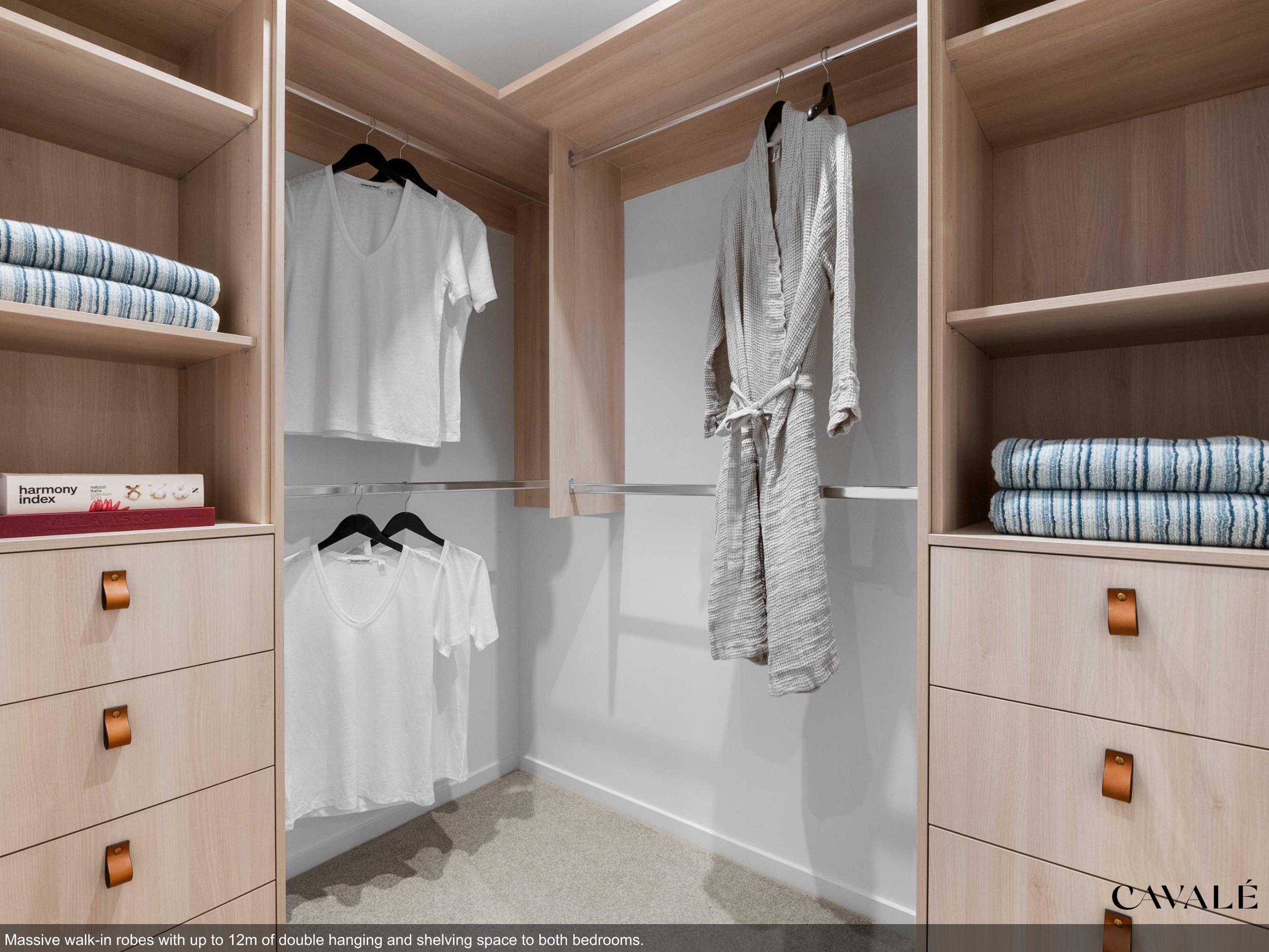 • Massive walk in robes with up to 12m of double hanging and shelving space
