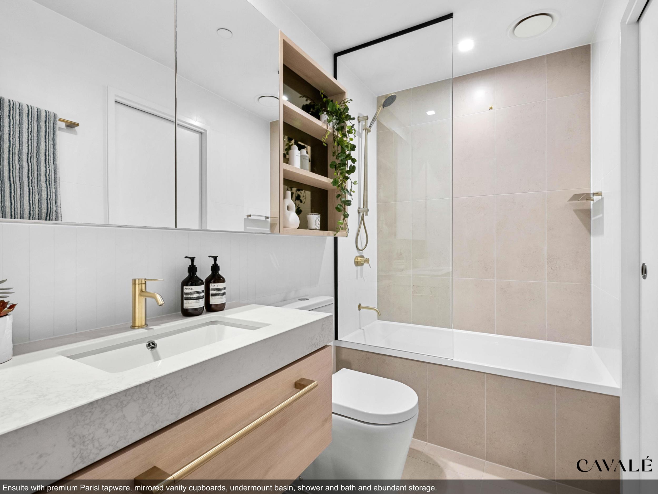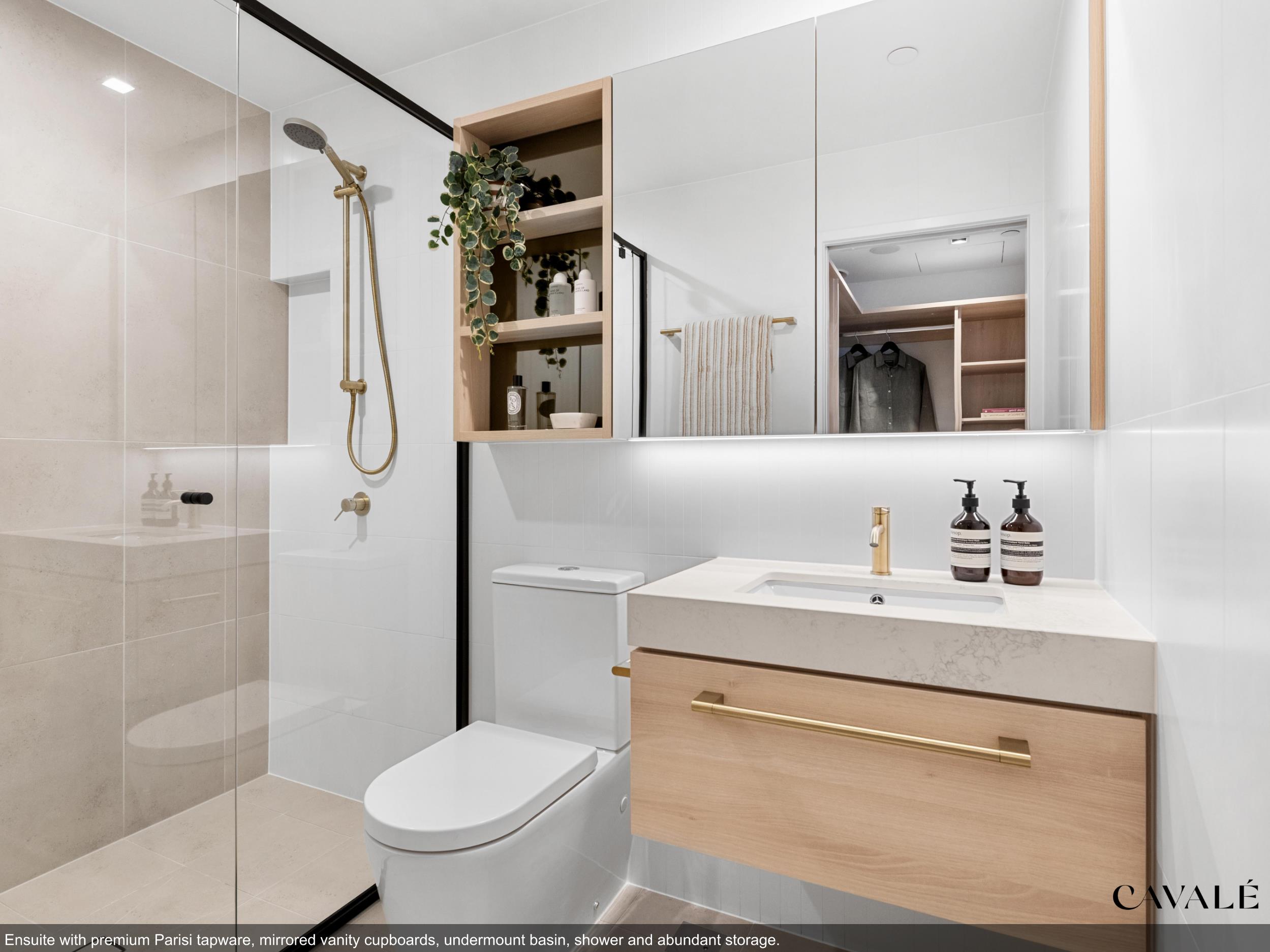• Ensuites with mirrored vanity cabinet, under mount basins, shower or bath