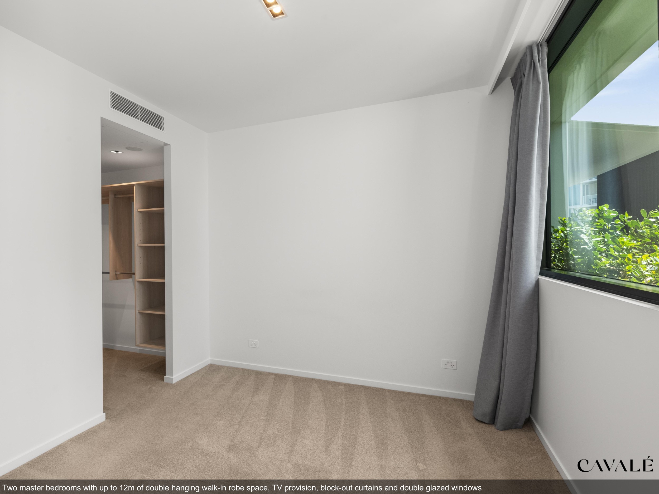 • Double glazed acoustic and tinted windows, motorised block out / sheer curtains & TV provision