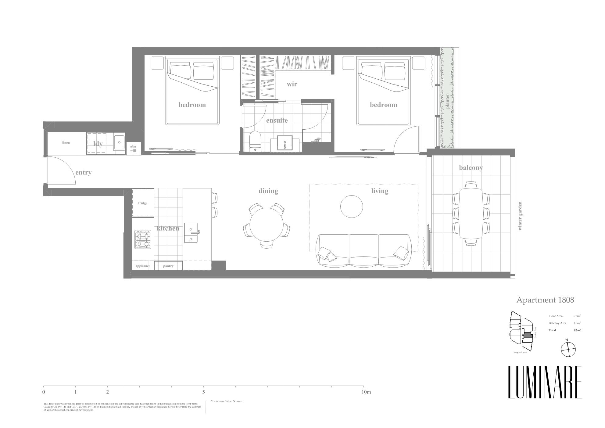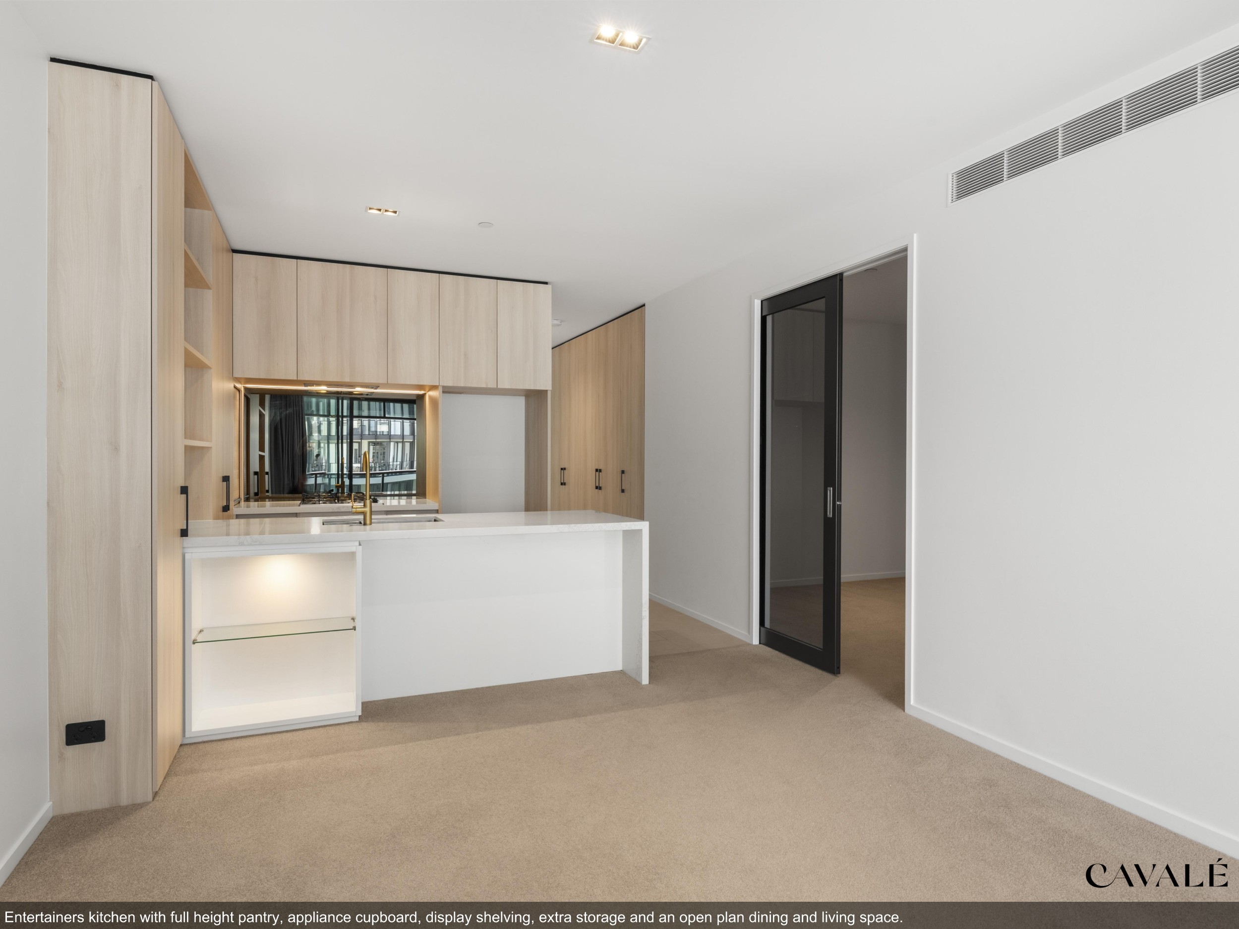 Luminare is Cavcorp’s latest architectural landmark with this apartment having an exceptionally large layout of 82m², soaring 2.7m ceilings and full-height stackable double glazed sliding doors that bring the outside in. The gourmet kitchen with stone breakfast bar and full height joinery flows gracefully into a spacious dining and lounge / home cinema space and separate laundry. The two bedrooms feature up to 12m of double hanging robe spaces, an ensuite with mirrored vanity cabinets, abundant storage and shelving space, high speed Wi-Fi & TV provision, block out / sheer curtains and double glazed acoustic windows.