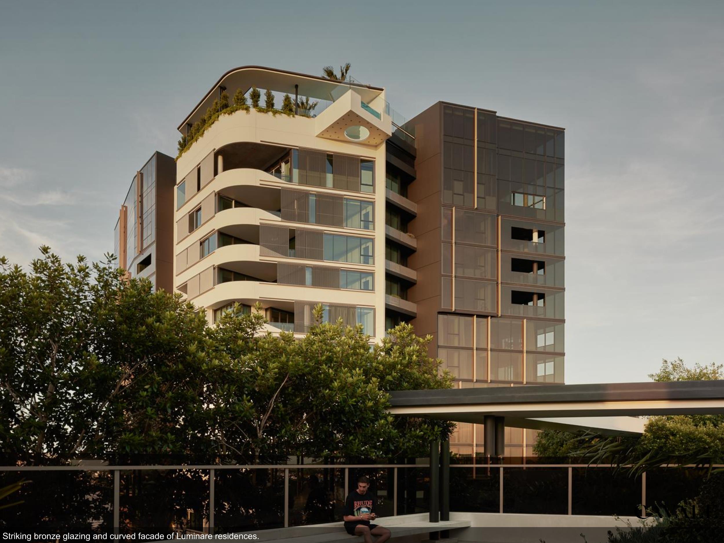 The striking bronze glazing and curved balconies create tranquil outdoor spaces to enjoy both river breezes and sunset views. Perfectly located next to Teneriffe Hill, the fabled Teneriffe River Walk and Gasworks Woolworths, Luminare residences offer maximum space for personal comfort and ease to everyday living.