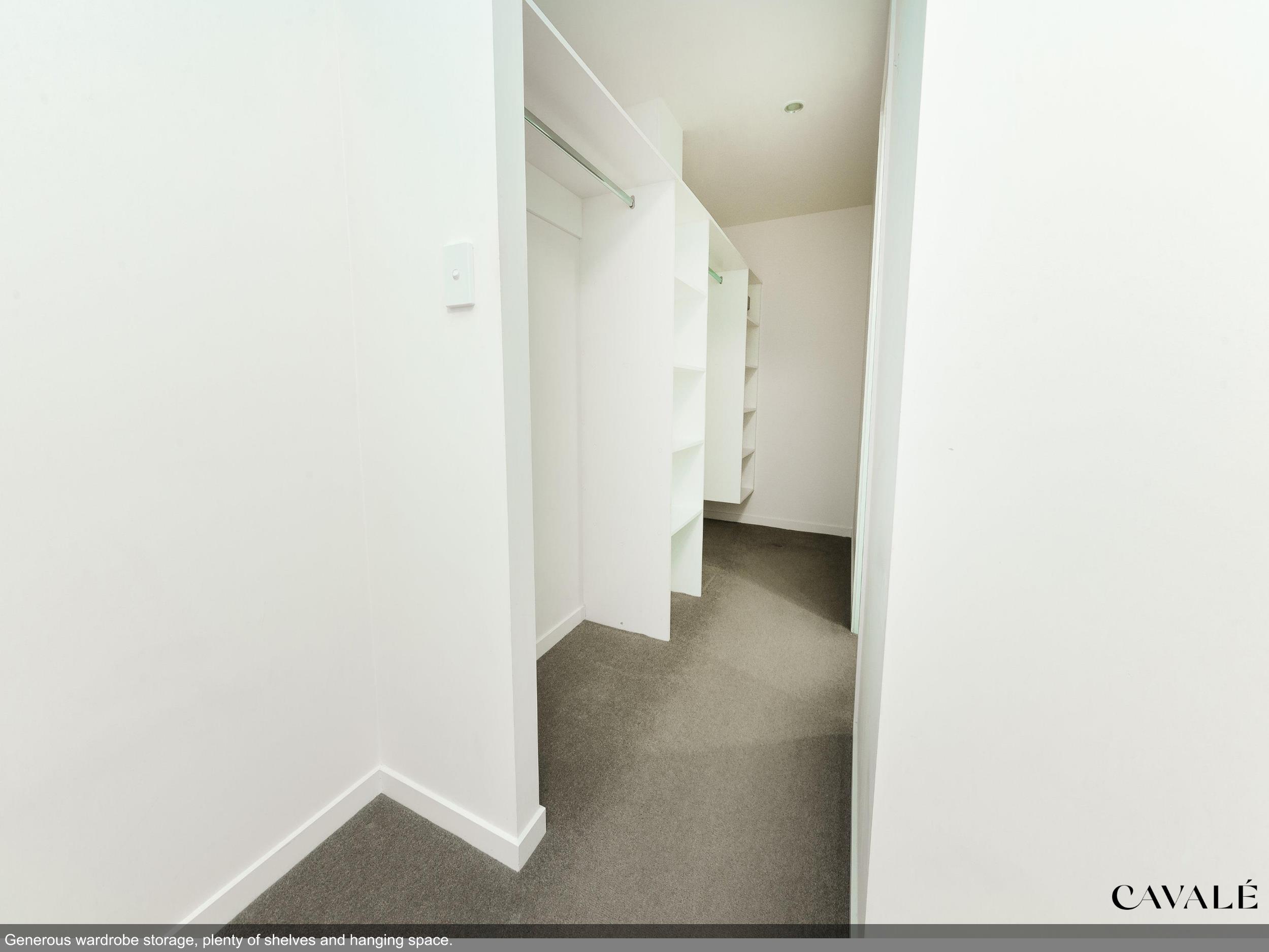 • Spacious walk in robes with hanging and shelving space