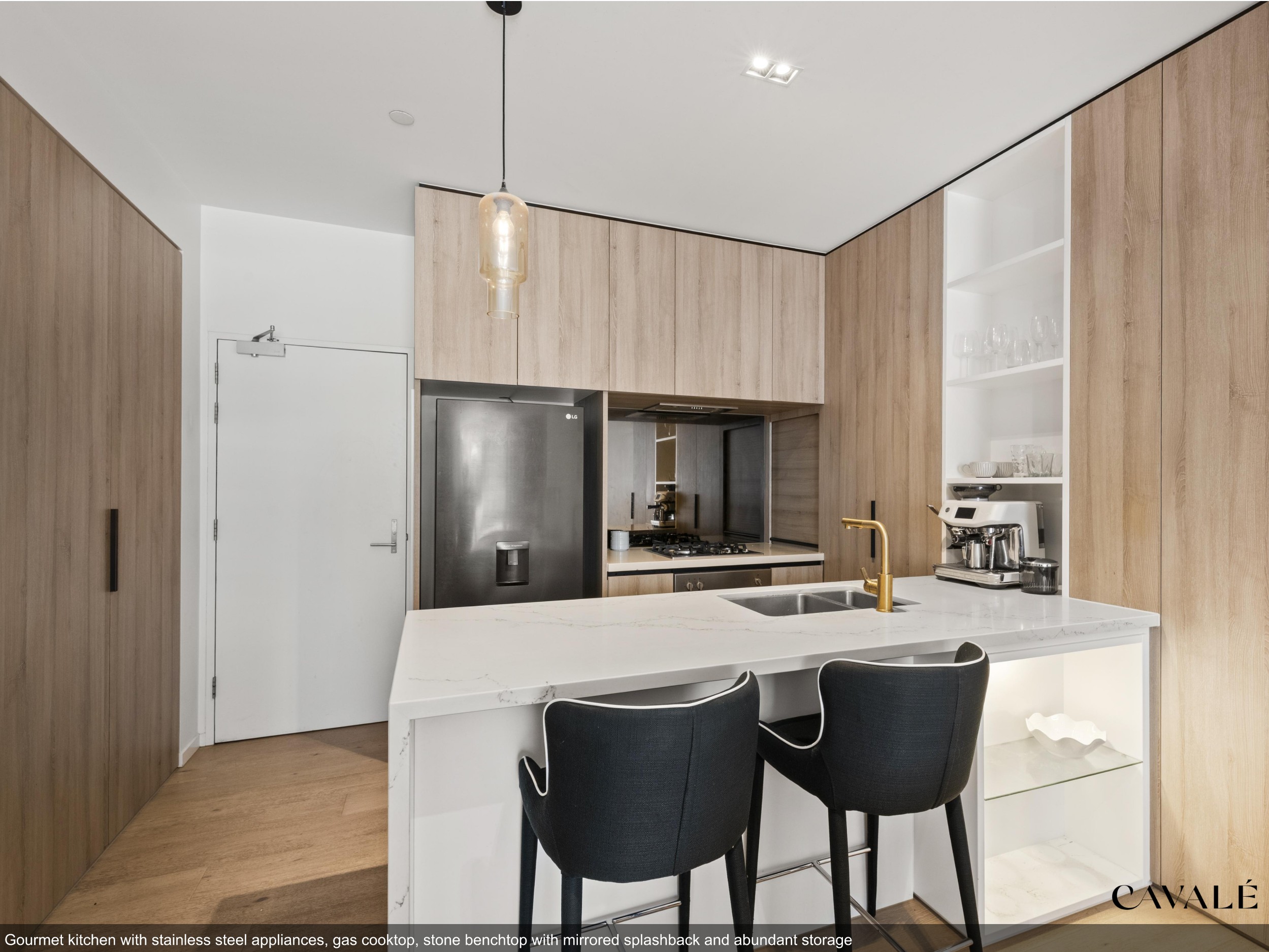 Multi-award winning Lucent redefines executive living through superior quality fixtures and fittings, including timber floors, soaring 2.7m ceilings that create a multi-functional living environment maximising light, space, storage, orientation and quality of finishes. The gourmet kitchen with 40mm Caesarstone benchtops and full height joinery flows gracefully into a spacious open plan lounge & dining/home cinema space. Master bedroom features generous double hanging walk-in robe space, ducted air-conditioning, block out curtains, ensuites with mirrored vanity cabinets and luxury marble tiling throughout.