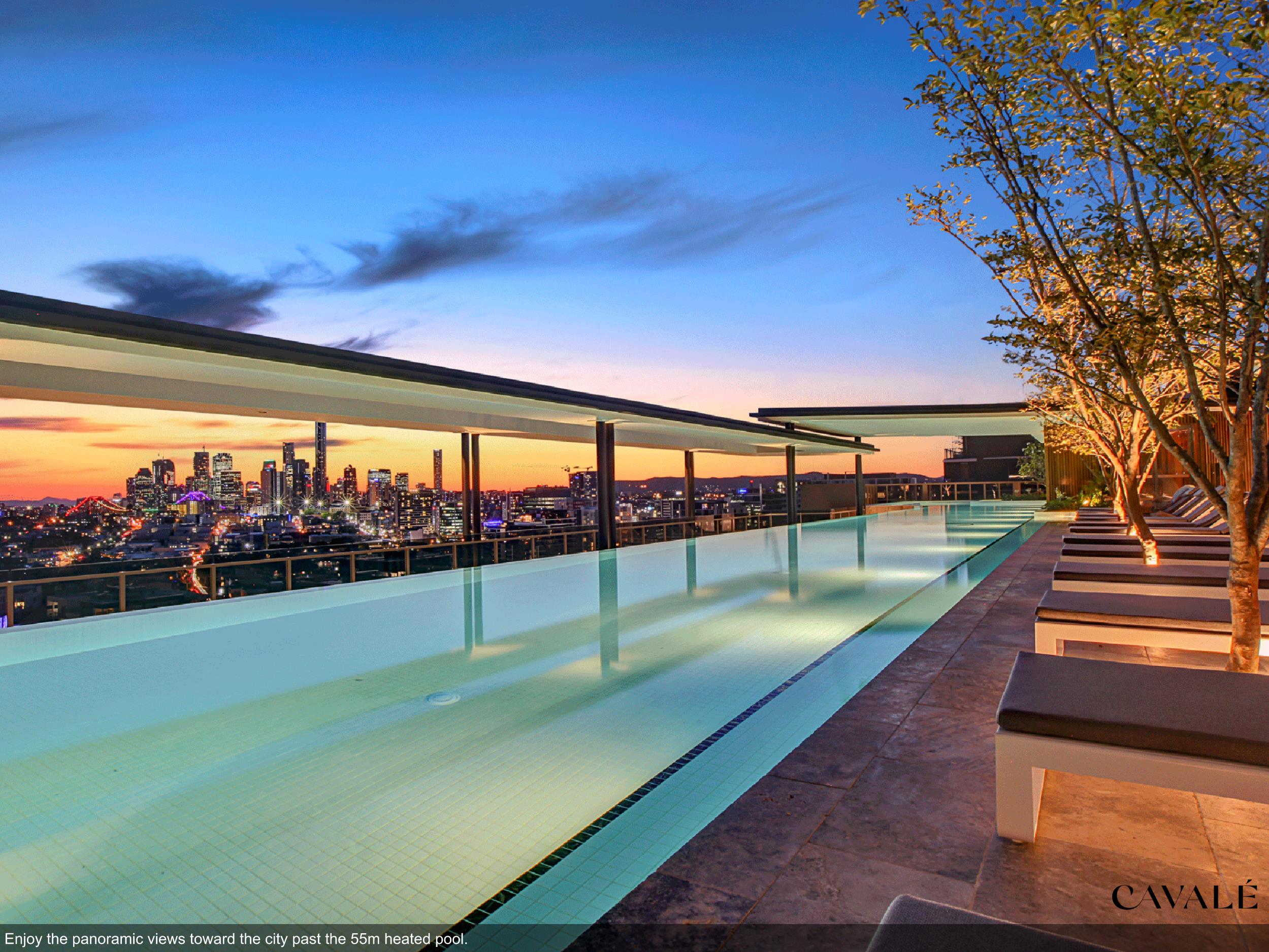 • Rooftop recreation deck (level 16) with heated ultra-luxurious, crystal clear, tiled magnesium swimming pool, spa and sauna
