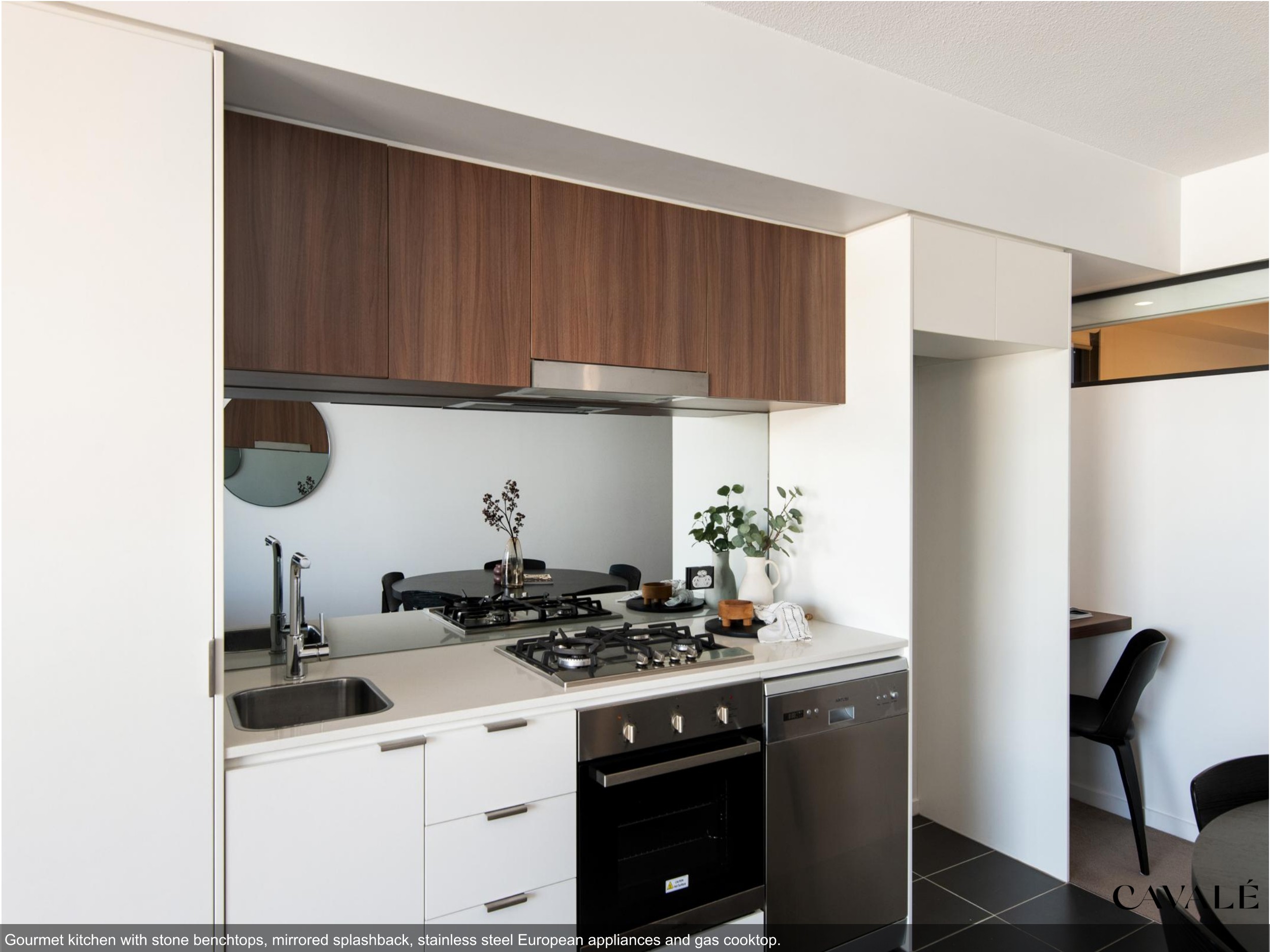 • 2.9m high kitchen joinery, full height pantry, appliance cupboards, stone bench tops, mirror splashback, stainless steel appliances with gas cooktop